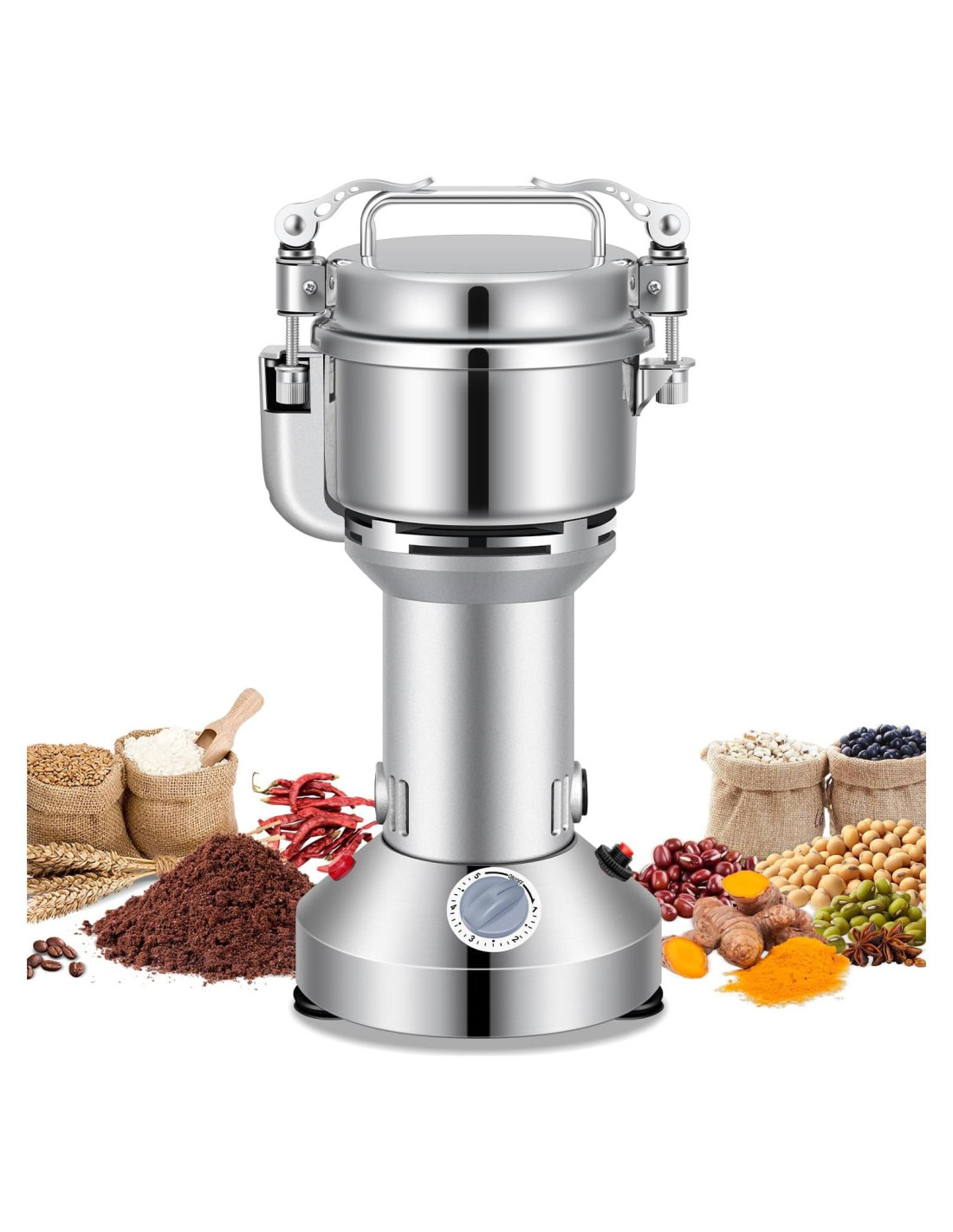- MOLINO DE GRANO PEQUEÑO: Potencia de 1,200W, capacidad de 300g, velocidad de 28,000 RPM con 3 tipos de cuchillas (molienda, rotativa y eliminación de polvo) para una fácil pulverización de materiales secos; finura de trituración de 50 a 300 mallas en menos de un minuto. No apto para materiales húmedos, mojados o aceitosos.