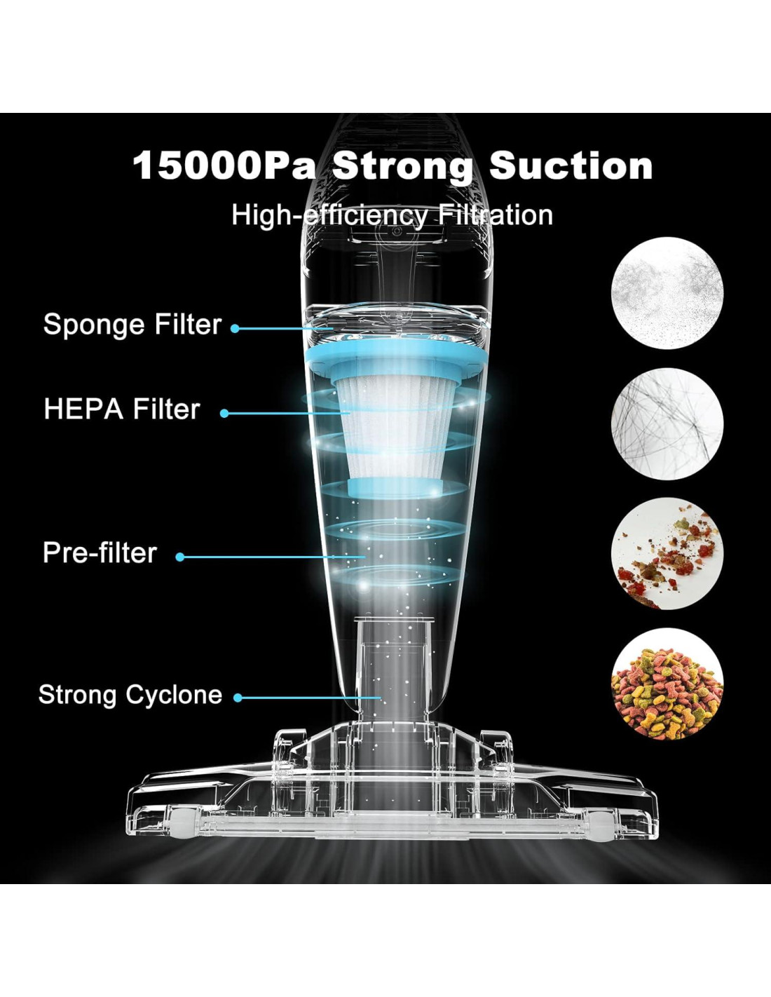 - Característica especial: Perfecto para suelos duros, 11 en 1 Palo y de Mano, 15Kpa Potente Succión, Sistema de Filtración de 3 Capas, REEMPLAZO HEPA: Por favor, consulta B0B12JX4Q8 para comprar el Reemplazo HEPA.
