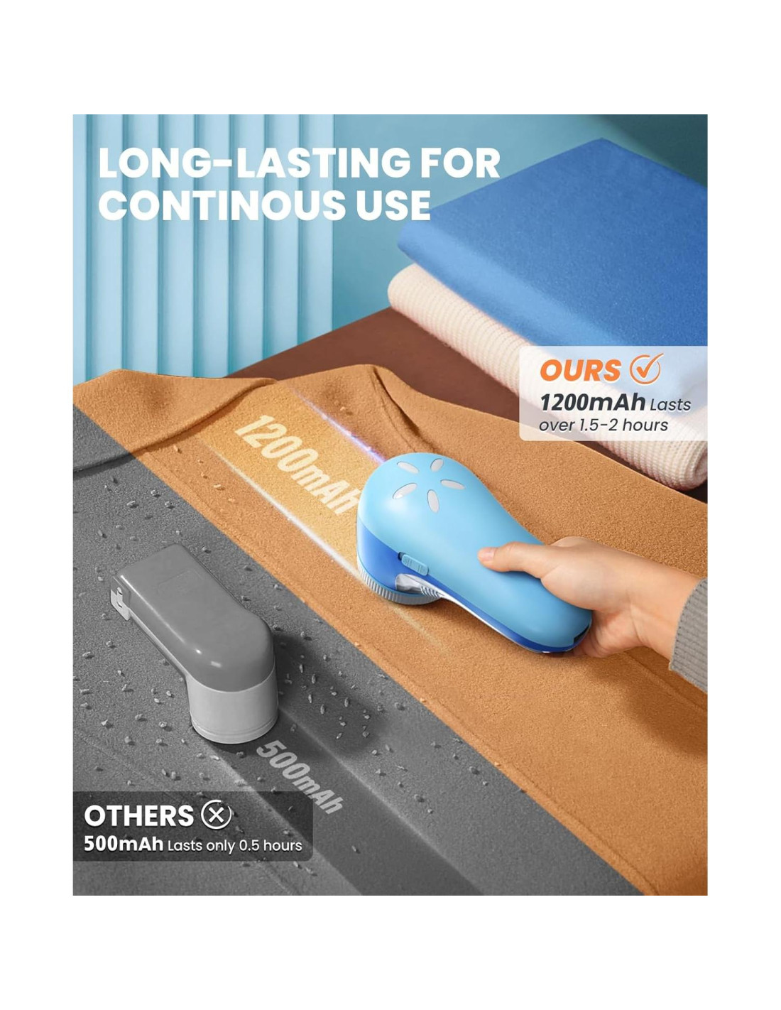 - Batería de Larga Duración: 1200mAh quitapelusas de tela funciona durante más de 1.5-2 horas de uso continuo, superando a otros de 500mAh que pueden requerir recarga a mitad de tarea en 0.5 horas. Nuestro quitapelusas de tela sigue funcionando, asegurando un servicio ininterrumpido para tu ropa y tapicería