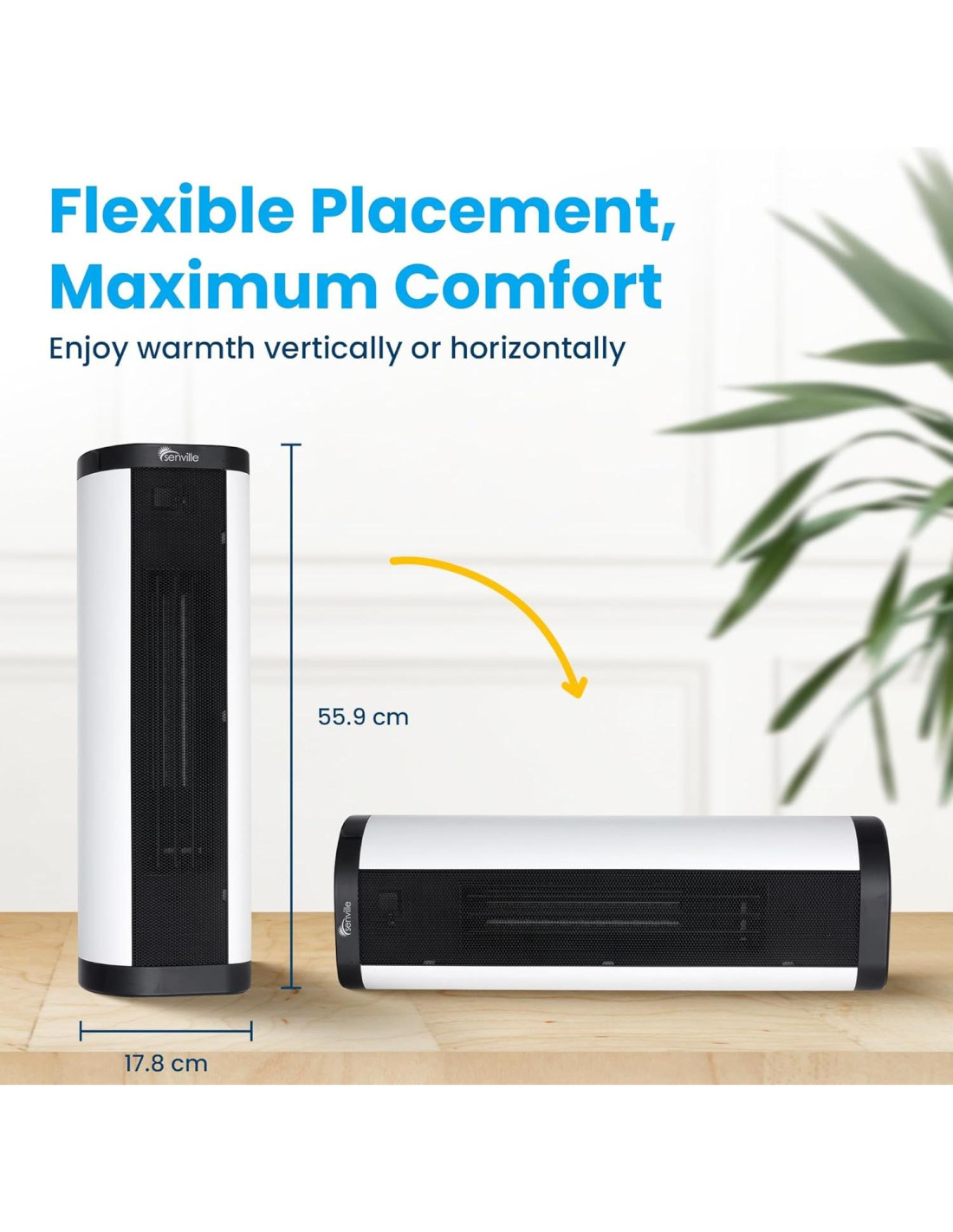- Diseño que Ahorra Espacio: Elige entre diseño vertical o disposición horizontal para tu calefactor eléctrico y se integra sin problemas con tu espacio. Configuración rápida y conveniente de enchufar y usar.