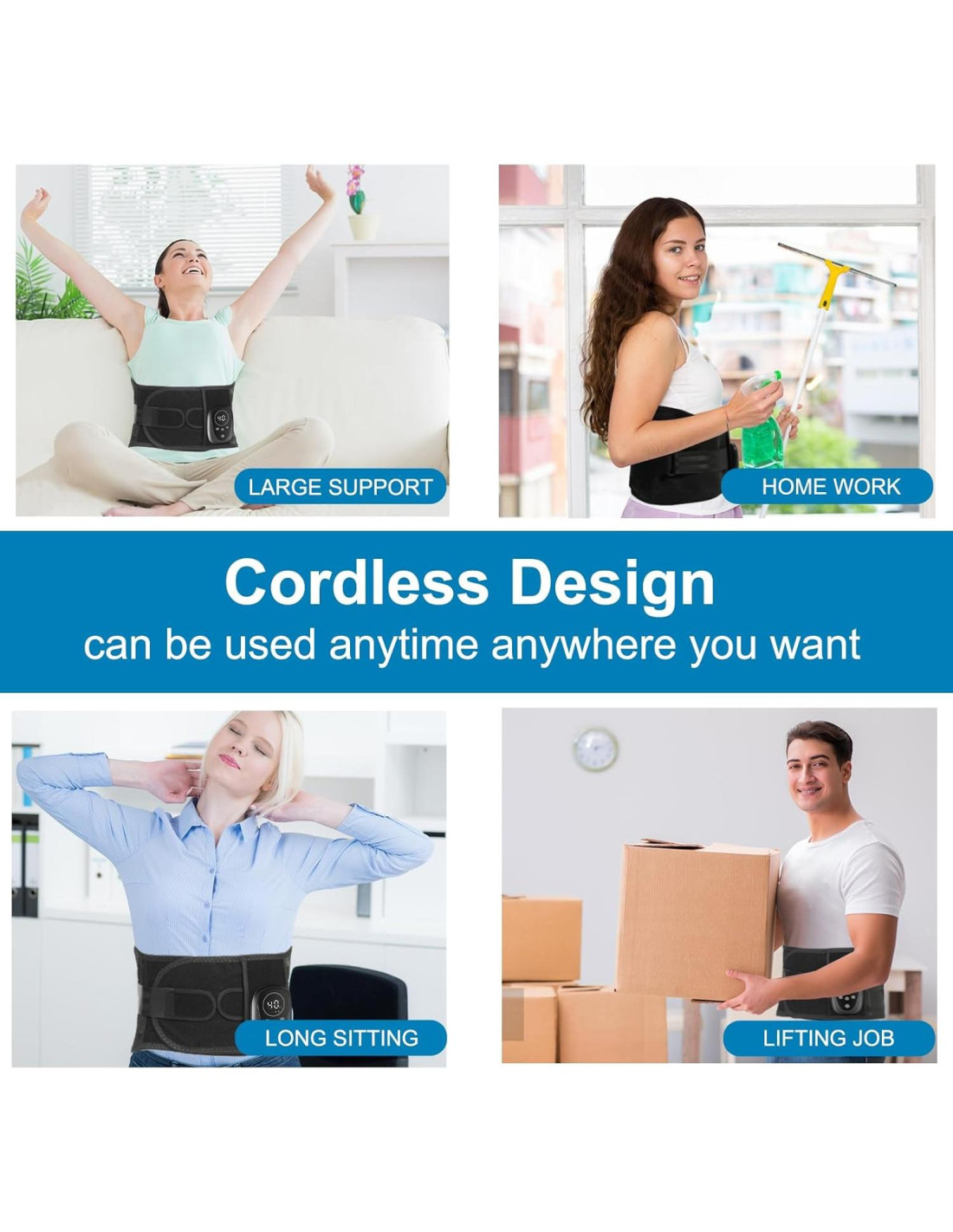 - Portátil e Inalámbrico: El panel de control inteligente incorporado con batería recargable de gran capacidad de 5000 mAh, asegurando un alivio duradero para el dolor de espalda. Tiene 6 opciones de temporizador, 20, 25, 30, 35, 40 y 45 minutos, lo que es perfecto para usar en cualquier lugar, siendo ideal para usar en el trabajo o mientras realizas tareas del hogar.