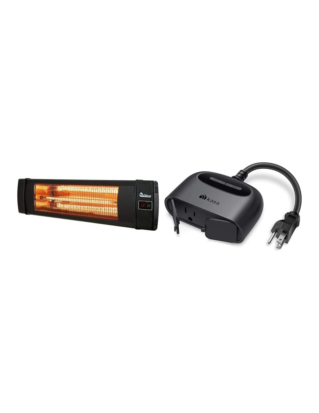 Calentador Infrarrojo DR-238 de Carbono para Exterior de Dr Infrared para Restaurante, Patio, Jardín, Garaje y Terrazas, Estándar, Negro. El DR-238 es un calentador infrarrojo para interiores y exteriores. Ofrece calor infrarrojo de carbono seguro, limpio, instantáneo y sin olor, brindándote la máxima comodidad para tus actividades invernales en interiores o exteriores. También ofrece 3 configuraciones de salida de calor 900W, 1200W y 1500W para satisfacer tus necesidades. El DR-238 está hecho de aluminio anodizado duradero y resistente a la intemperie para años de uso al aire libre. Viene con cable de alimentación, soporte de montaje en pared y techo, y control remoto. 120 Voltios, listado por ETL. Enchufe Inteligente Kasa para Exterior, Enchufe Wi-Fi para Hogar Inteligente con 2 Tomas, Resistencia al Clima IP64, Compatible con Alexa, Google Home e IFTTT, No se Requiere Hub, Certificado por ETL (EP40). Extiende tu Hogar Inteligente al exterior con el Enchufe Inteligente Kasa para Exterior EP40 con iluminación paisajística, bombas de piscina, luces navideñas u otros electrodomésticos. Utiliza el ajuste de amanecer/atardecer para programar mejor tu dispositivo conectado. La aplicación Kasa contiene no solo todas las funciones que esperas de la familia TP-Link Kasa, incluidas acciones inteligentes, sino también una guía para ti en cada paso de la instalación para conectar tu enchufe inteligente con tu Wi-Fi, Alexa o asistente de Google.