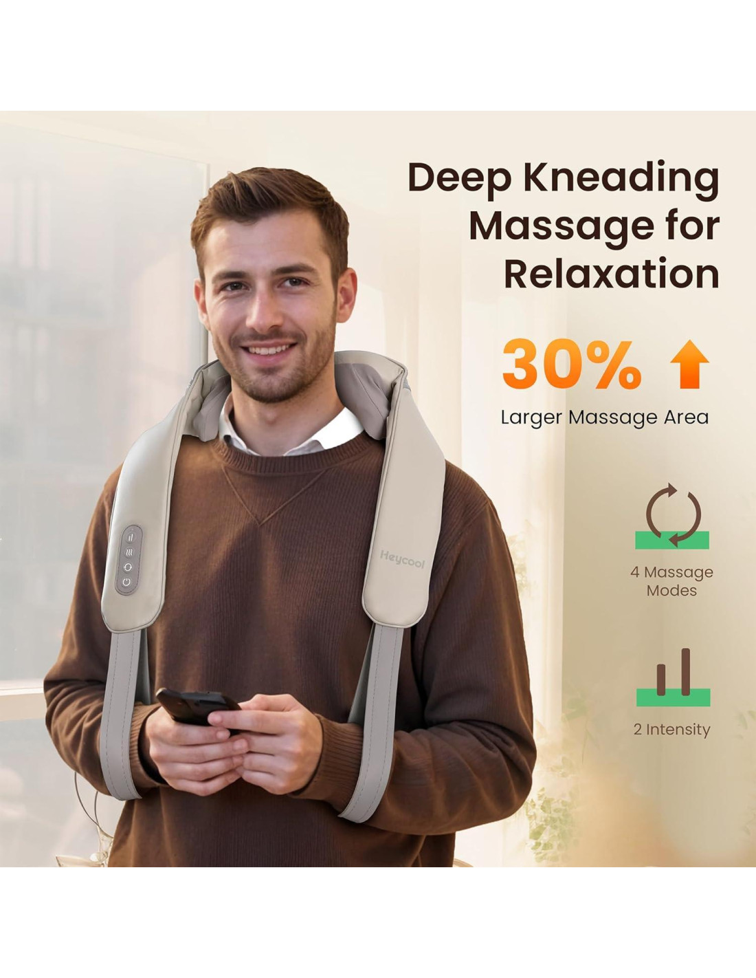 - Masaje Profundo: El Masajeador de Cuello y Espalda Heycool proporciona un masaje profundo, el área de masaje es más grande, ayuda a relajar la tensión muscular. 4 Modos de Masaje y 2 Intensidades Ajustables te permiten disfrutar de un masaje de cuello personalizable.