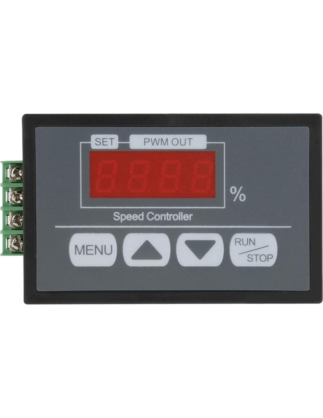 - FUNCION: Este controlador de motor se utiliza principalmente para controlar la velocidad del motor de CC. El controlador de motor tiene un diseño de panel de visualización digital que es fácil de leer y operar, lo que facilita el ajuste.