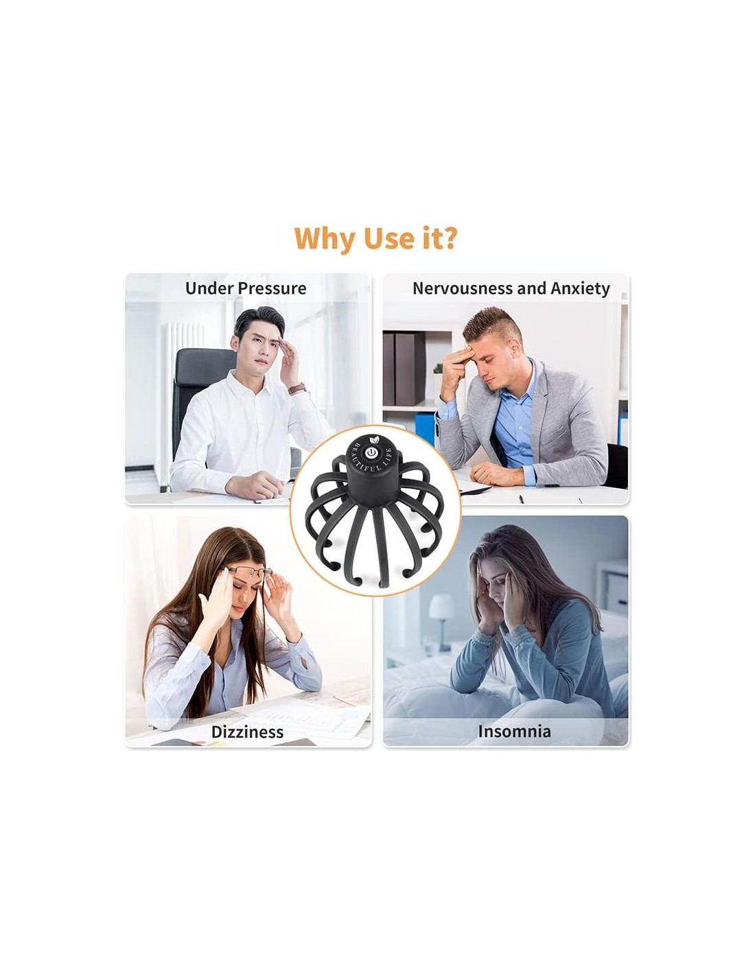 - BIEN DISEÑADO: La forma del masajeador y los picos elásticos se mueven suavemente por su cuero cabelludo, estimulando el cerebro y el cuello para una experiencia verdaderamente vigorizante. El masaje suave difundirá una sensación de calma por todo su cuerpo, dejándolo sintiéndose bien y listo para enfrentar el día.