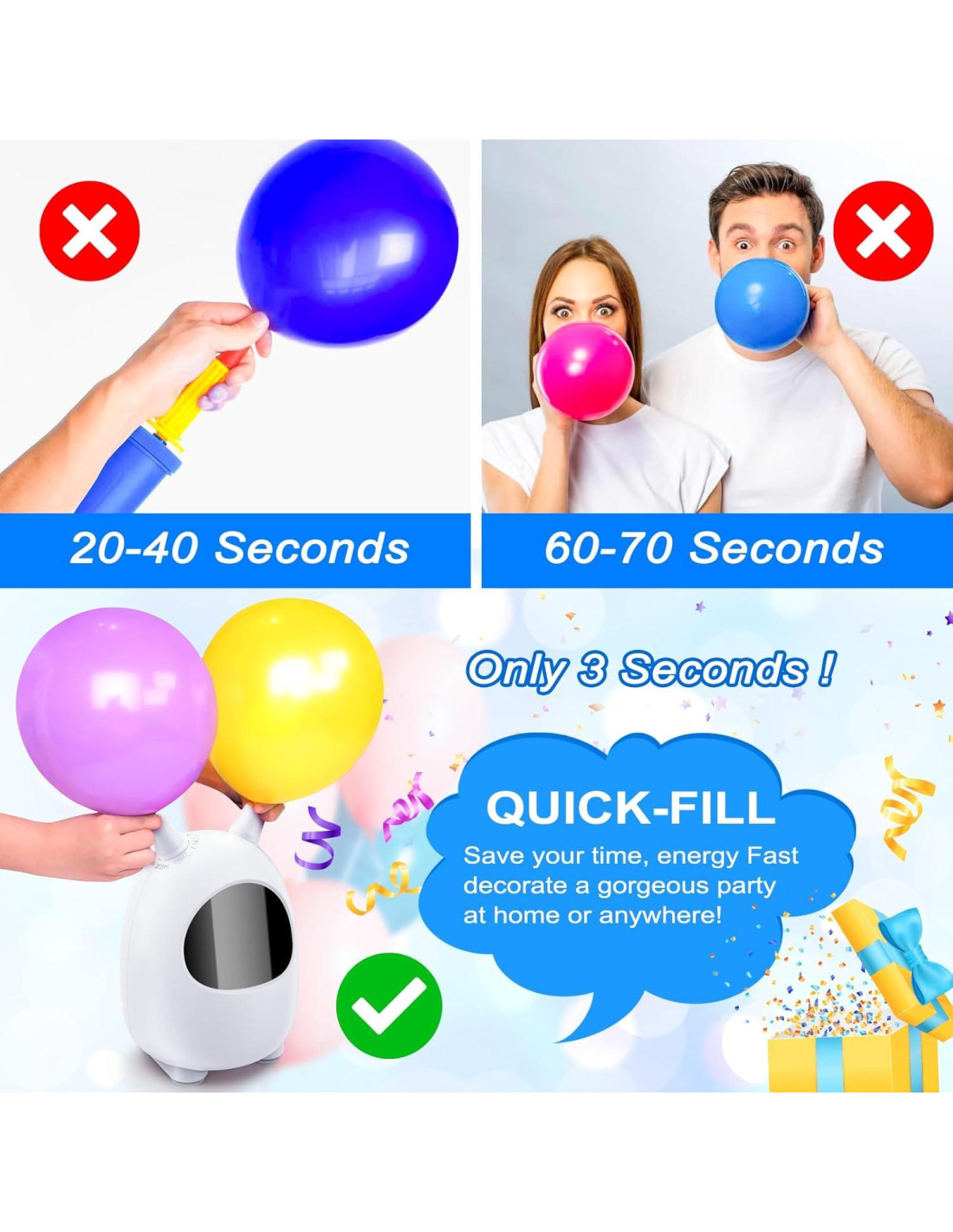 - [Bombas de globos eléctricas] - Motor de 600W, solo toma 3s llenar un globo. Esta bomba de globo eléctrica de calidad inflará cientos de globos de látex decorativos en un tiempo súper rápido, y es un compañero de globos comúnmente utilizado en algunas actividades/festival/fiesta/celebración/decoración.
