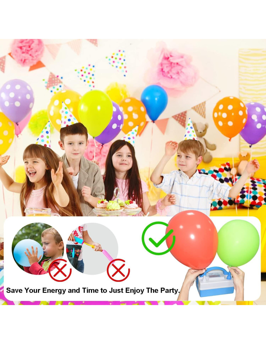 - [BOMBA ELÉCTRICA DE INFLADO RÁPIDO] : Solo toma 3 segundos llenar completamente un globo, y hay dos puertos de inflado en la bomba que pueden llenar dos globos al mismo tiempo. Ahorra tu tiempo y energía, haz que decorar para tu fiesta sea muy fácil