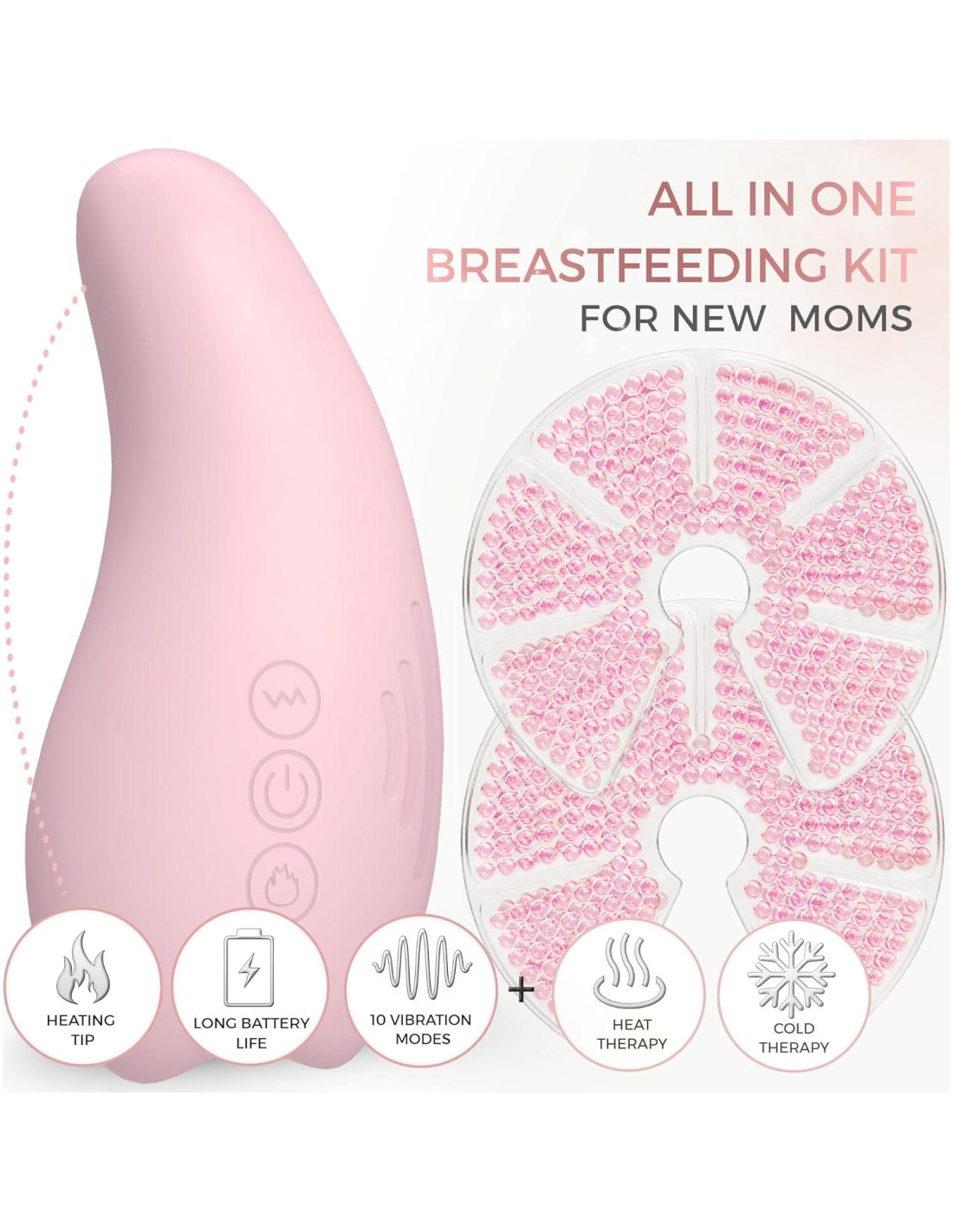 - Di Adiós al Dolor de Pechos - Nuestro masajeador de lactancia proporciona un alivio efectivo del dolor en los pechos mientras amamantas, extraes leche o te duchas. Masajea los conductos obstruidos con la punta del masajeador caliente o elige entre 10 modos de vibración para ayudar al flujo de leche. Agrega almohadillas de terapia para pechos calientes o frías para aliviar el dolor y la congestión.