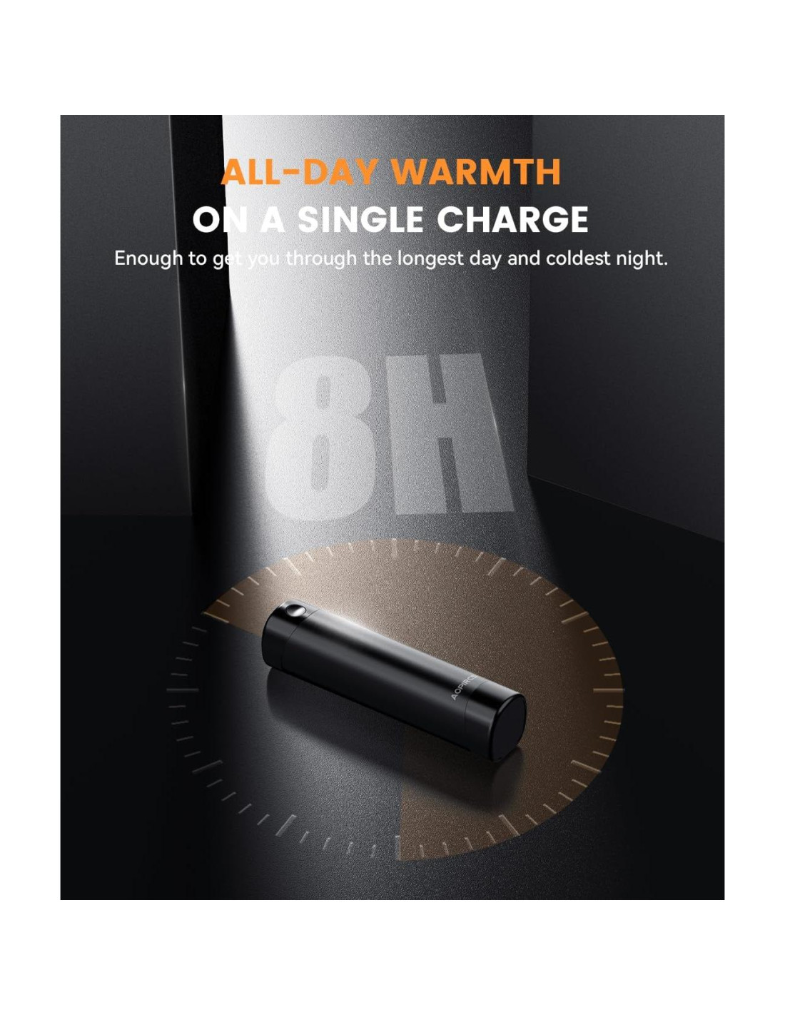 - CARGA RÁPIDA 2A, CALOR DURADERO - Pasa menos tiempo cargando y más tiempo abrigado. Con carga rápida de 2A, PalmGlow alcanza una carga completa en aproximadamente 3 horas. Una vez cargado, disfruta de hasta 8.5 horas de calor continuo en configuración baja, suficiente calidez para soportar tu día más largo.