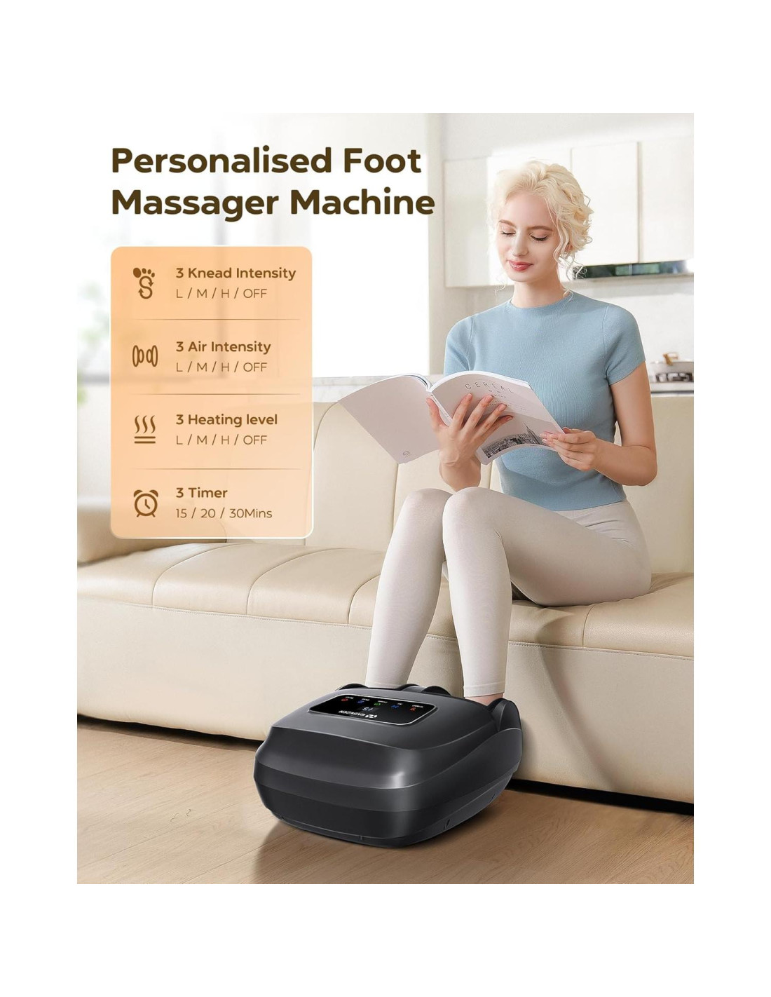 - Masajeador de Pies Personalizable y Profesional: Cada función de nuestro masajeador de pies shiatsu se puede usar por separado o en combinación. Con 3 Intensidades de Amasado (APAGADO/L/M/ALTO), 3 Intensidades de Compresión de Aire (APAGADO/L/M/ALTO), 3 Niveles de Calor (40-50-55C) y 3 Temporizadores (15/20/30 minutos), permitiéndote personalizar tu programa de masaje según tus diferentes necesidades y preferencias. Nota: se recomienda comenzar desde los ajustes más bajos.
