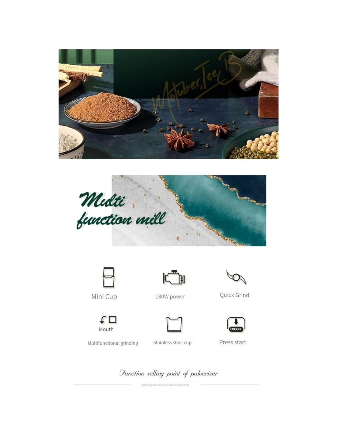 - El motor de alta velocidad y la cuchilla de acero inoxidable de alta calidad trituran completamente el polvo para una gran finura.