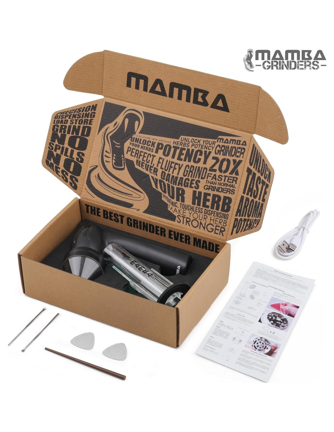 ¡Consigue un Molinillo de Hierbas Mamba hoy y libera esos aromas y sabores favoritos! Los métodos tradicionales de molienda y dispensación a mano son demasiado lentos y difíciles. Tienes que usar dos manos, es fácil que se obstruya y no puedes moler mucho a la vez. Obtén dientes afilados de batería de acción rápida y un Interruptor de Palanca de una mano para movimientos alimentados sin atascos, todo en un diseño moderno con colores elegantes. Los Molinillos de Hierbas Mamba son las herramientas de cocina perfectas para cualquier amante de las hierbas. Rápido y fácil de usar, y completo con un conjunto completo de accesorios para una molienda de hierbas sin problemas. Un molinillo de hierbas de condimentos recargable por USB sin esfuerzo con dientes afilados de aluminio en una cabeza metálica elegante. Capacidad de hasta 2g para una preparación rápida con una sola mano. Disfruta de cero derrames o desperdicios con este molino eléctrico de hierbas y especias, ideal para albahaca, cilantro, orégano y más. Molinillo Herbal Automático de Cocina USB. Un molinillo automático pequeño y fácil de usar con un suave Interruptor de Palanca para una experiencia de molienda automática de hierbas sin atascos ni tensiones, perfecto para todas las manos. Para hasta 2g de material en una cabeza metálica de 55mm de ancho. Dientes afilados de aleación de aluminio impulsados por 4Nm de torque. Batería recargable por USB de 1200mAh - cable y accesorios adicionales incluidos. Corta y empuja a través del material sin aglomerarse. Motor eléctrico alimentado por una batería de 1500mAh Li-ion que obtiene 4Nm de torque de giro. Obtén beneficios terapéuticos para manos enfermas con movilidad y fuerza limitadas. Por favor, carga completamente el molinillo antes del primer uso. Los diseños y pruebas del equipo Mamba han llevado a un Molinillo de Batería que desbloquea el sabor, aroma distintivo y potencia de tus hierbas, todo con solo presionar un botón. Ve al equipo Mamba buscando nuestro video original de Kickstarter del molinillo eléctrico de hierbas.