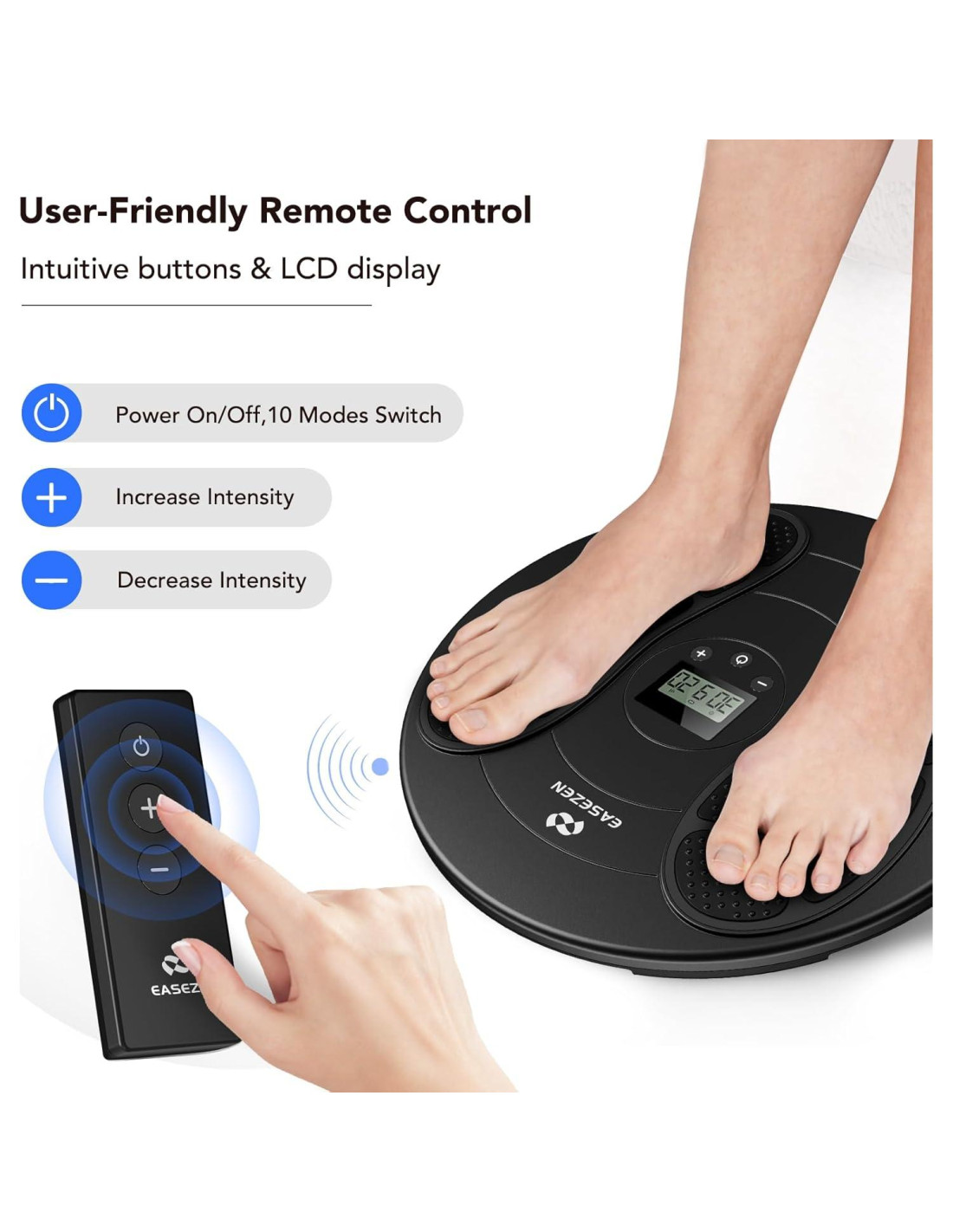 - Tecnología Dual TENS y EMS: El estimulador de pies EaseZen está diseñado para mejorar condiciones como neuropatía en los pies, dolor artrítico, espasmos musculares, hinchazón, RLS; promueve la circulación sanguínea y mejora el rendimiento muscular.