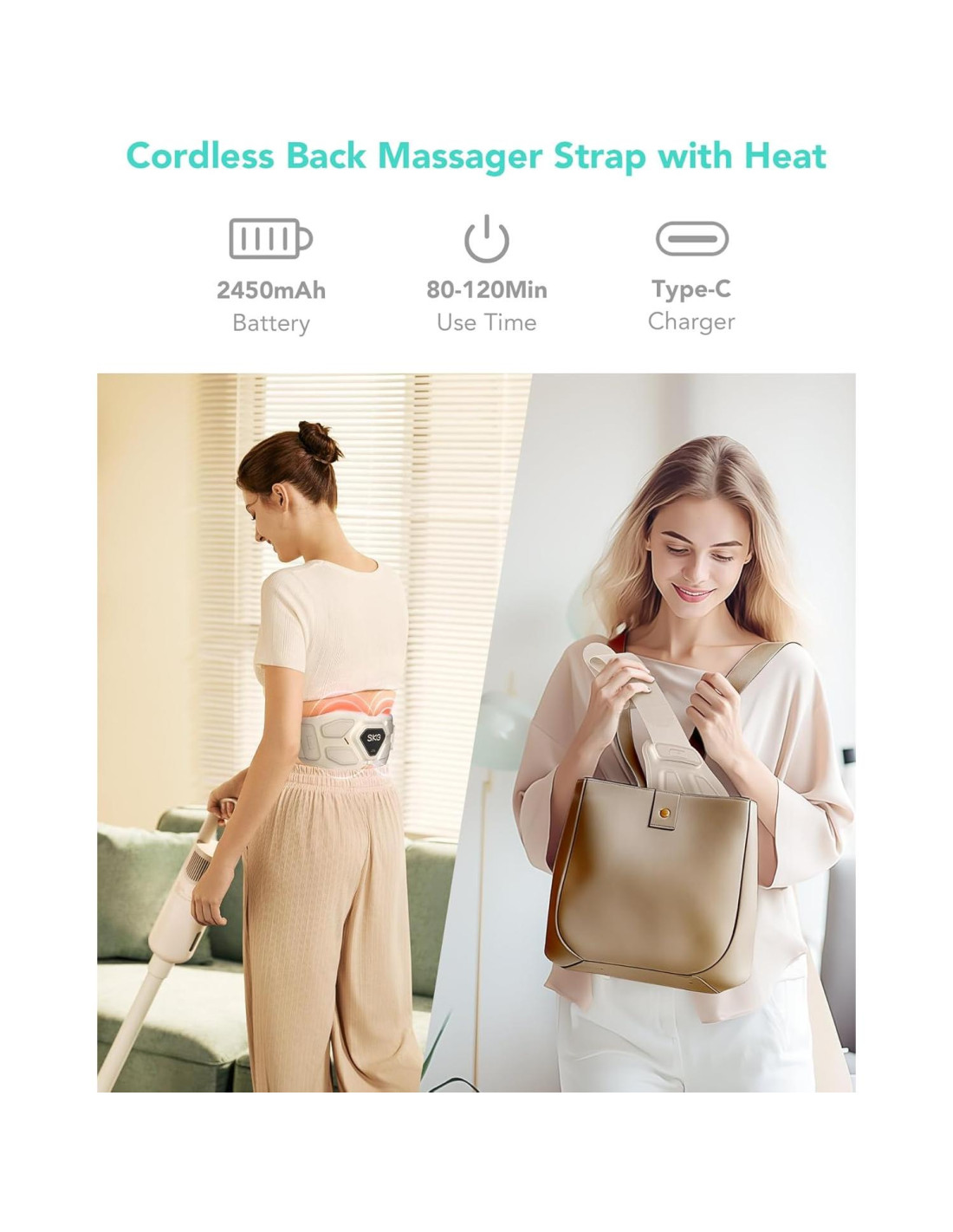 - Masajeador de espalda inferior SKG cuenta con 3 modos de vibración y 9 modos P-Tech, proporcionando alivio personalizable para el malestar lumbar. 8 cabezales de masaje de acero de tungsteno, un área de cobertura más grande, 8000 percusiones y movimientos de amasado por minuto, experiencia de masaje mejorada