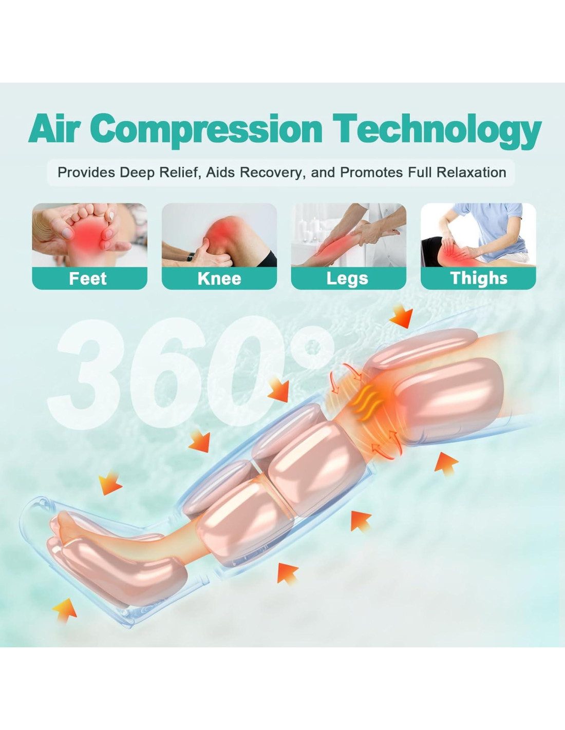 - [Regalo Perfecto] El masajeador de piernas por compresión de aire con calor puede relajar toda tu pierna con masaje de compresión de aire y calor. ¡Este masajeador de rodillas es realmente una gran opción de regalo para toda tu familia! Además, apoyamos una Garantía de Devolución de Dinero de 30 Días por Cualquier Motivo.
