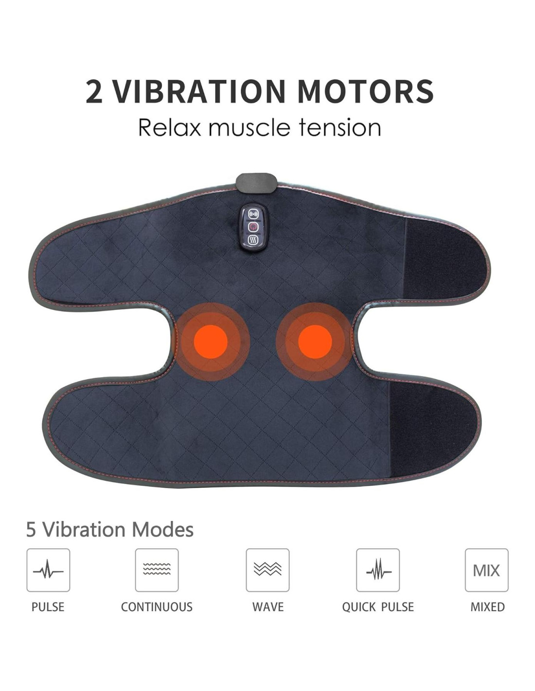 - Correas Ajustables y Mantener en su Lugar - Las correas de velcro ajustables aseguran el masajeador de rodilla en su lugar, y las almohadillas de masaje térmico se pueden envolver y asegurar a cualquier rodilla o extenderse a los muslos, pantorrillas, brazos, piernas y mantenerse en su lugar. Puedes usar ambas o una envoltura de soporte según sea necesario.