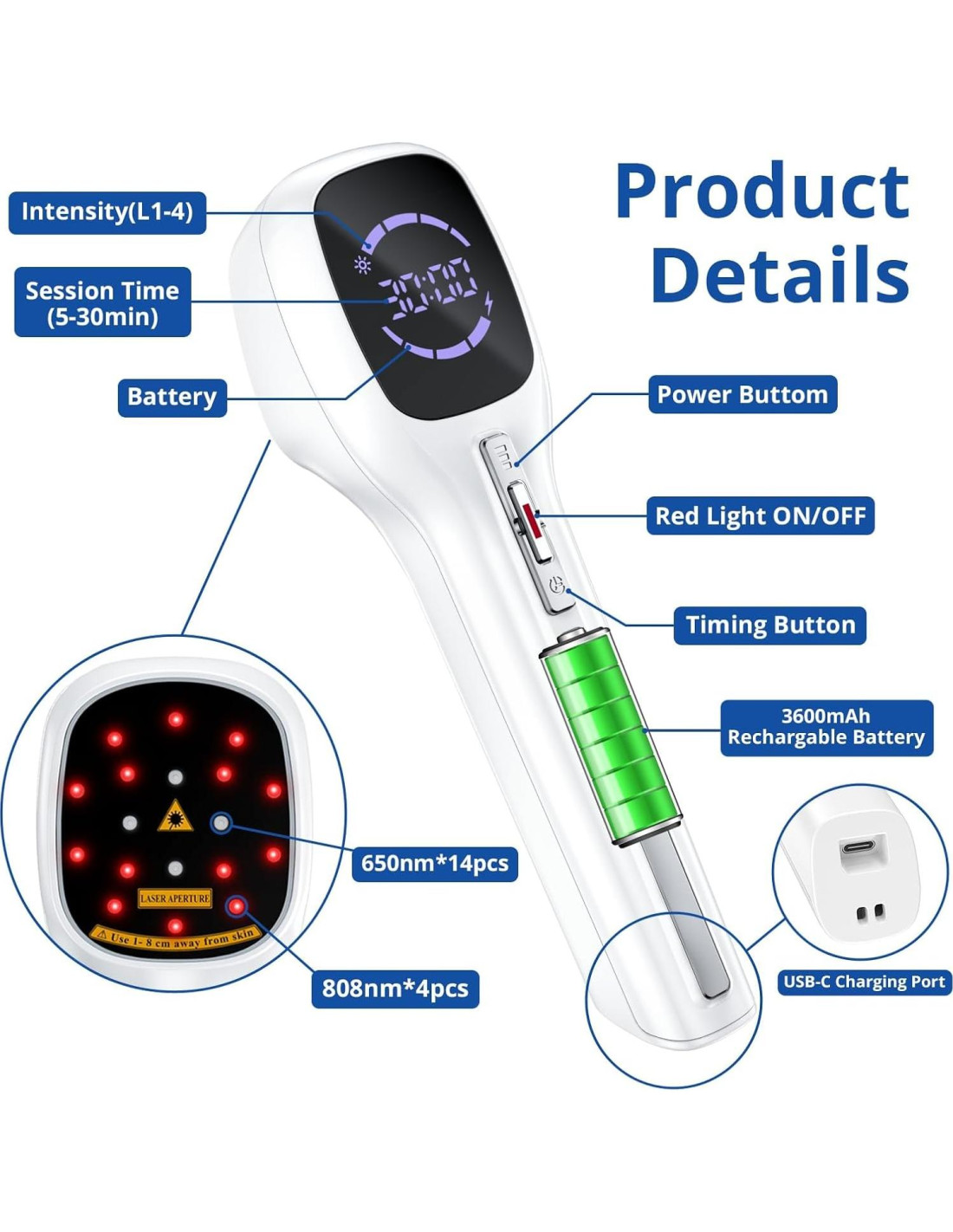 - LONGITUDES DE ONDA DOBLES PARA UN ALIVIO MÁS PROFUNDO - 650NM & 808NM - Combinando 14x 650nm de luz roja y 4x 808nm de luz infrarroja cercana, este dispositivo de terapia con láser frío apoya la relajación, movilidad y comodidad muscular. Ideal para el cuidado post-actividad, malestar corporal general o recuperación diaria