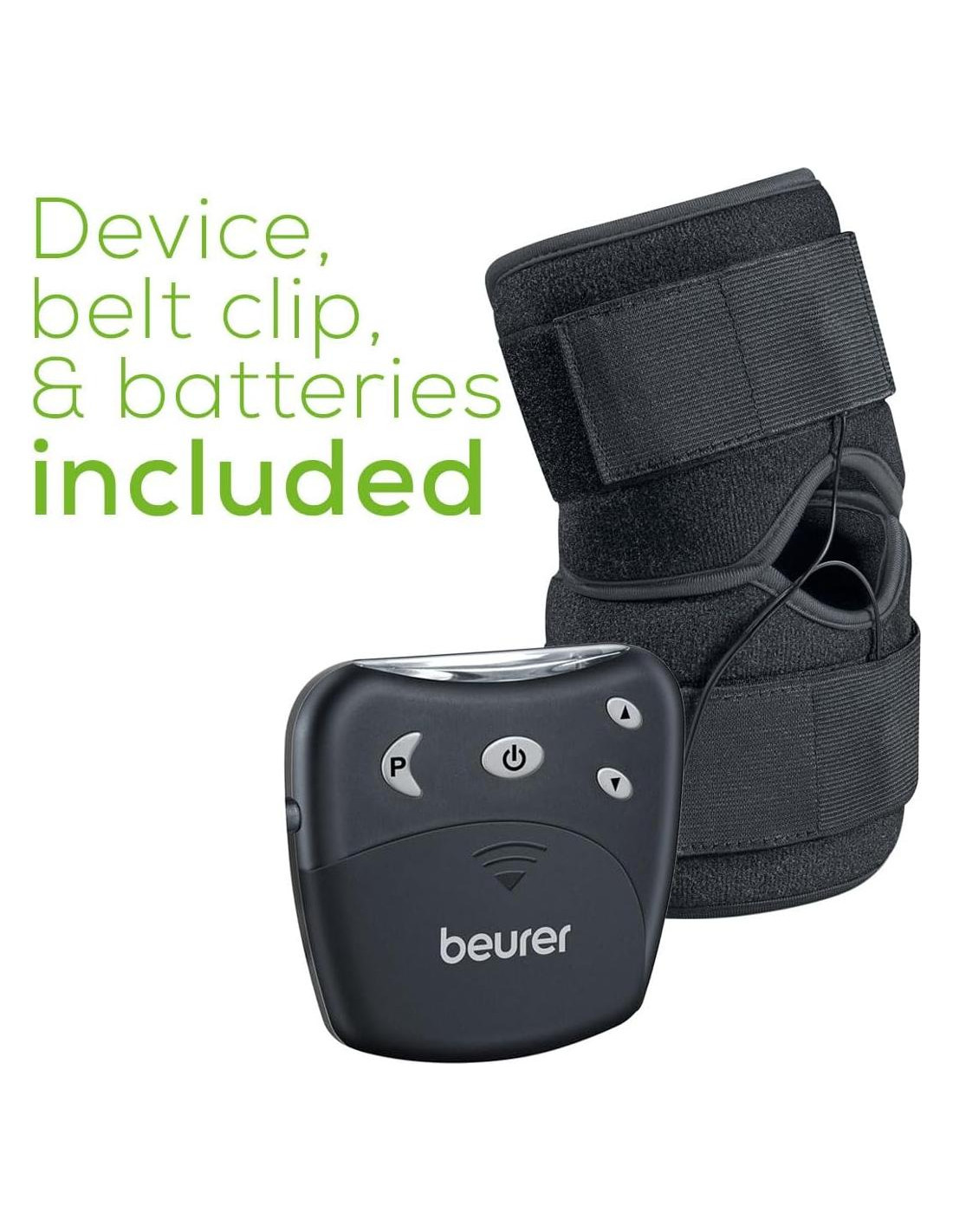 El Dispositivo TENS Beurer EM29 para Rodilla y Codo está diseñado para el alivio del dolor sin medicamentos para lesiones comunes por sobreuso u otros problemas musculares y de tendones. Cuenta con una banda universal que se puede usar tanto en el codo como en la rodilla para una aplicación más específica. Incluye electrodos de contacto por agua reutilizables. No es necesario comprar gel ni almohadillas de gel adicionales. Los electrodos de agua incluidos se pueden usar una y otra vez. Ideal para uso diario y para atletas para ayudar en la recuperación. Incluido en la caja está la unidad EM29, los cables de electrodos, baterías AAA y el manual de instrucciones.