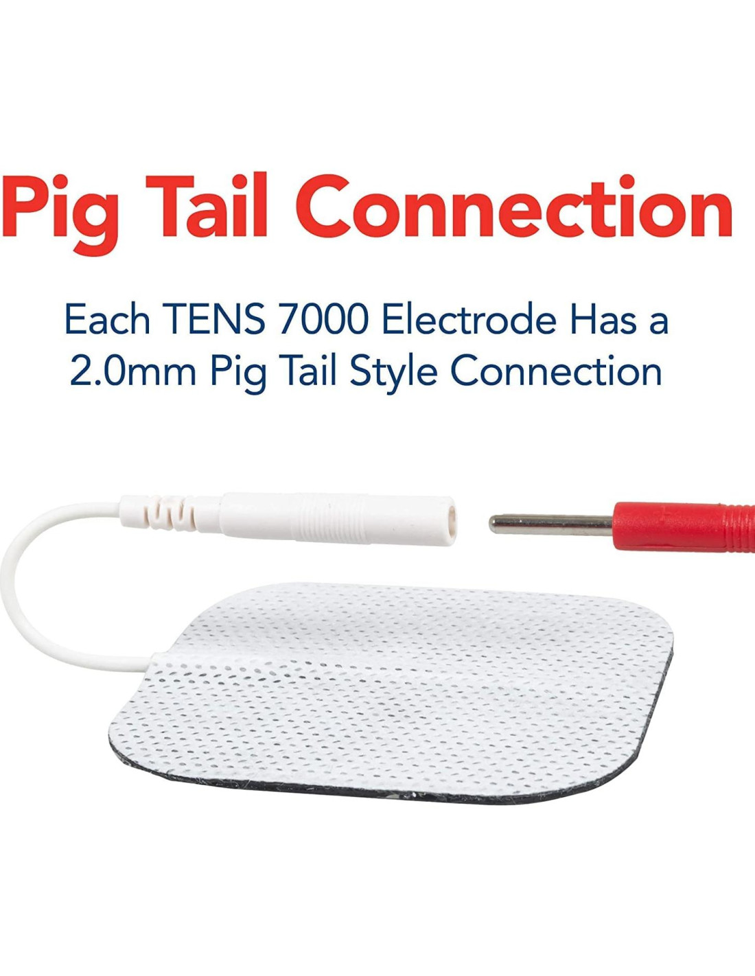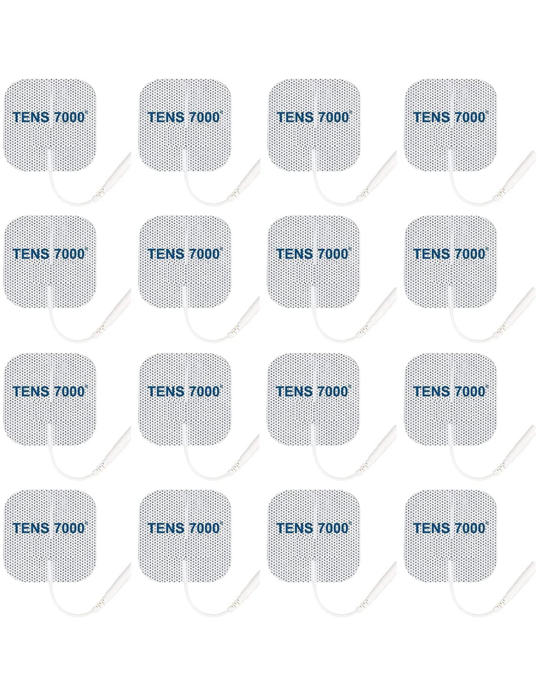 - Almohadillas de Reemplazo TENS 7000 con Estuche. 16 unidades (8 pares) de almohadillas de electroterapia TENS de calidad premium de 2" x 2" (5.08 cm x 5.08 cm); almohadillas de e stim de grado médico con interfaz de cable de estilo pig-tail. Almohadillas de unidad TENS 7000 que son reutilizables y distribuyen uniformemente