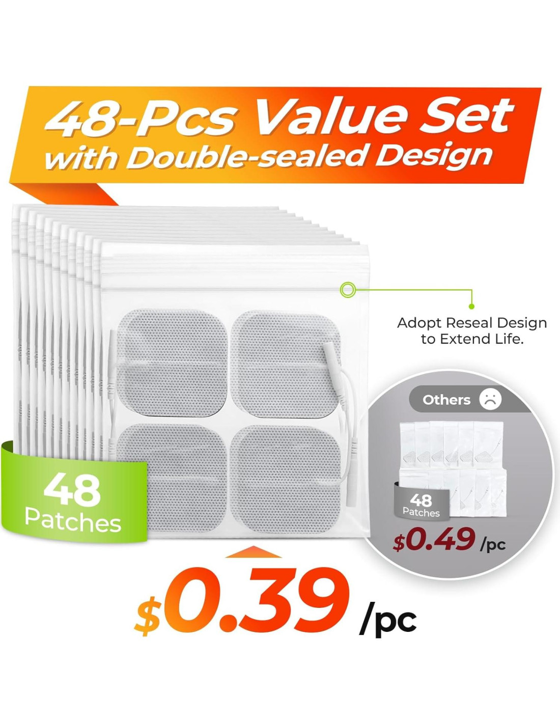 - Paquete de 48 Piezas. ¿Aún buscas paquetes de electrodos grandes con gran valor? El set de almohadillas de reemplazo AUVON TENS tiene un increíble valor de $0.39 por pieza, definitivamente una buena opción de reemplazo para ti.