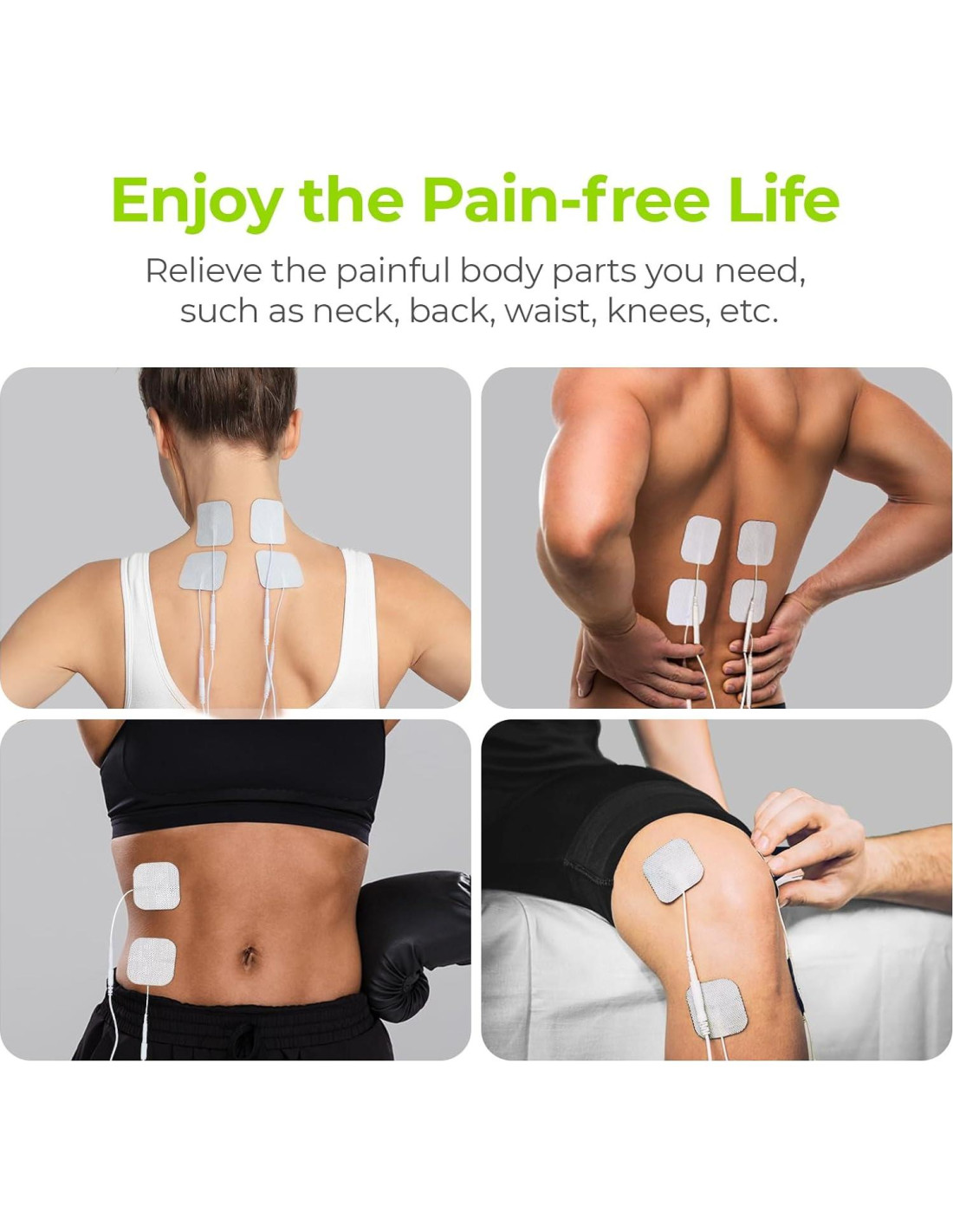 - Auto-adhesivo Superior. El gel premium en las almohadillas de la máquina TENS asegura un agarre firme y cómodo en tu espalda, hombro, cuello, parte baja de la espalda, rodilla o nervio ciático y logra el máximo alivio del dolor.
