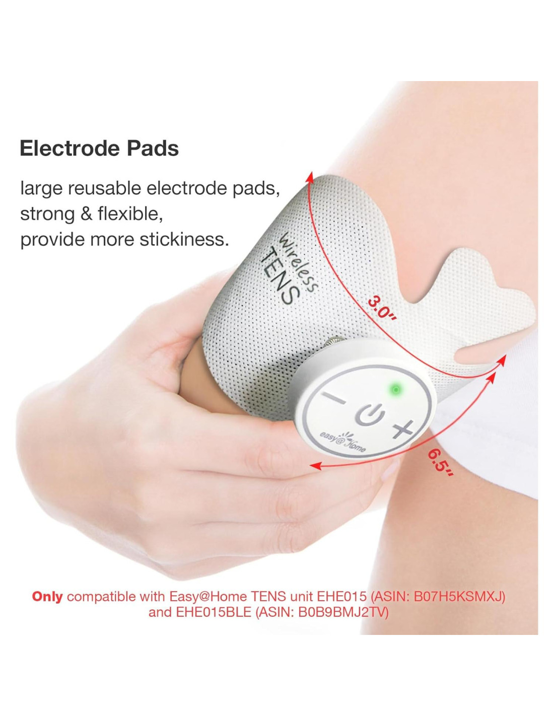 - [Seguro y Cómodo]- Almohadillas de Electrodos de Carbono Autoadhesivas Inalámbricas Easy@home, Paquete de 4 almohadillas en forma de mariposa de 6.5" x 3" (16.5 cm x 7.6 cm) se adaptan a la mayoría de las áreas amplias de tu cuerpo, muy seguras y cómodas de usar en las almohadillas de reemplazo del dispositivo TENS en tu rodilla, pantorrilla, muslo, brazo, cuello, hombro, parte baja y alta de la espalda y mucho más
