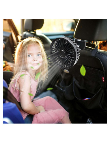 - Ventilador de Auto en Asiento Trasero: Perfecto para familias con niños o mascotas, ya que mantiene el área trasera fresca y cómoda