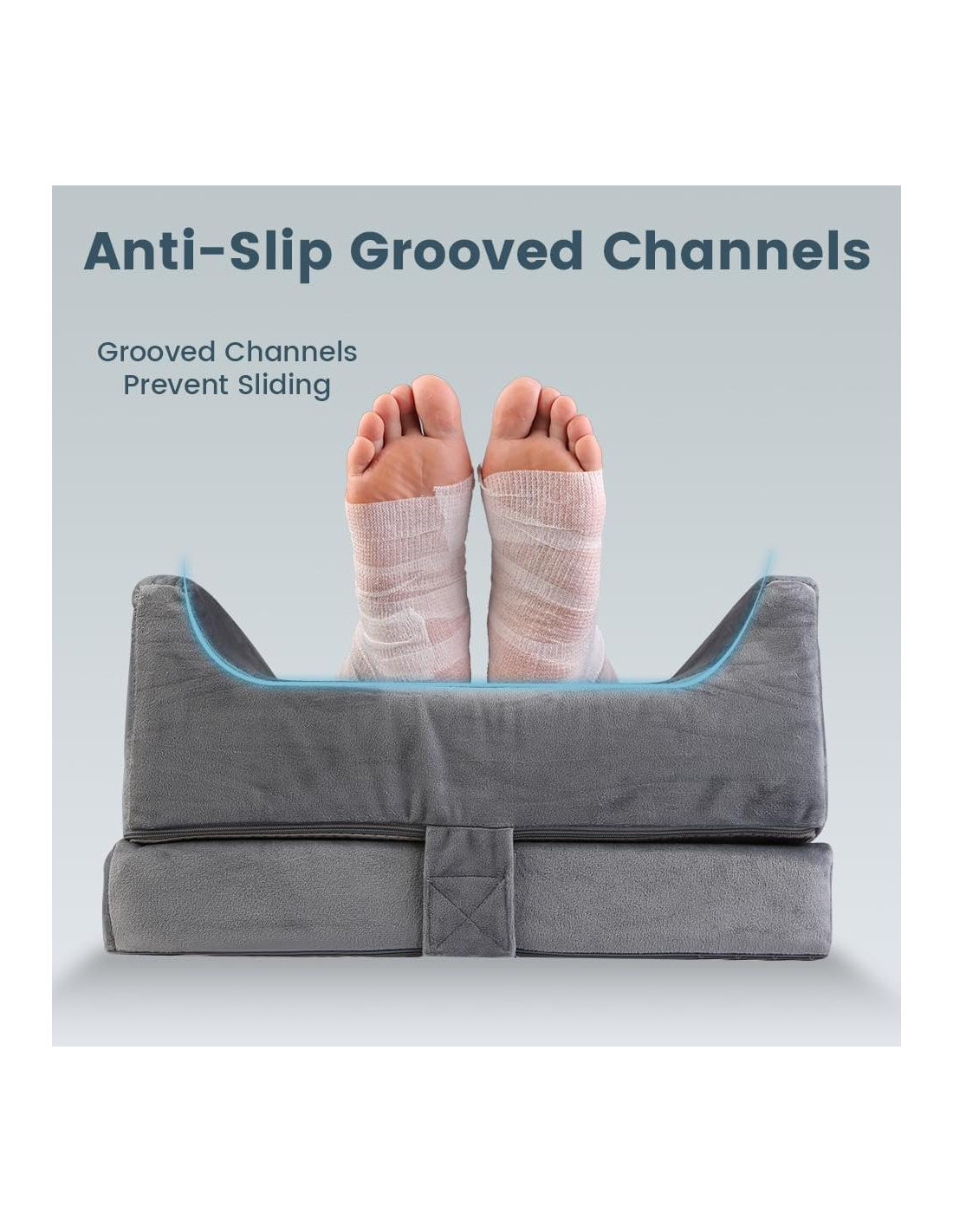 - [Canal de Estabilidad en Forma de U de Grado Clínico] Diseñado para aliviar la edema de piernas y pies, el cojín elevador para piernas post-cirugía (reemplazo de rodilla/fracturas), el canal ergonómico en forma de U se adapta a yesos/botas de recuperación para aumentar la estabilidad de la extremidad. Su base con cuentas de silicona aumenta la fricción de contacto, reduciendo el desplazamiento y asegurando el soporte de la extremidad durante la recuperación.