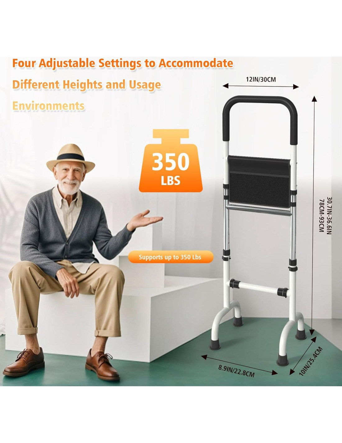 - Duradero para Uso Diario Este asistente de pie está hecho de material resistente a la oxidación, duradero y fácil de mover y almacenar. Ya sea que esté en casa o al aire libre, el Asistente de Elevación Ajustable para Ancianos es un compañero confiable para ayudarle a levantarse y mantenerse de pie.