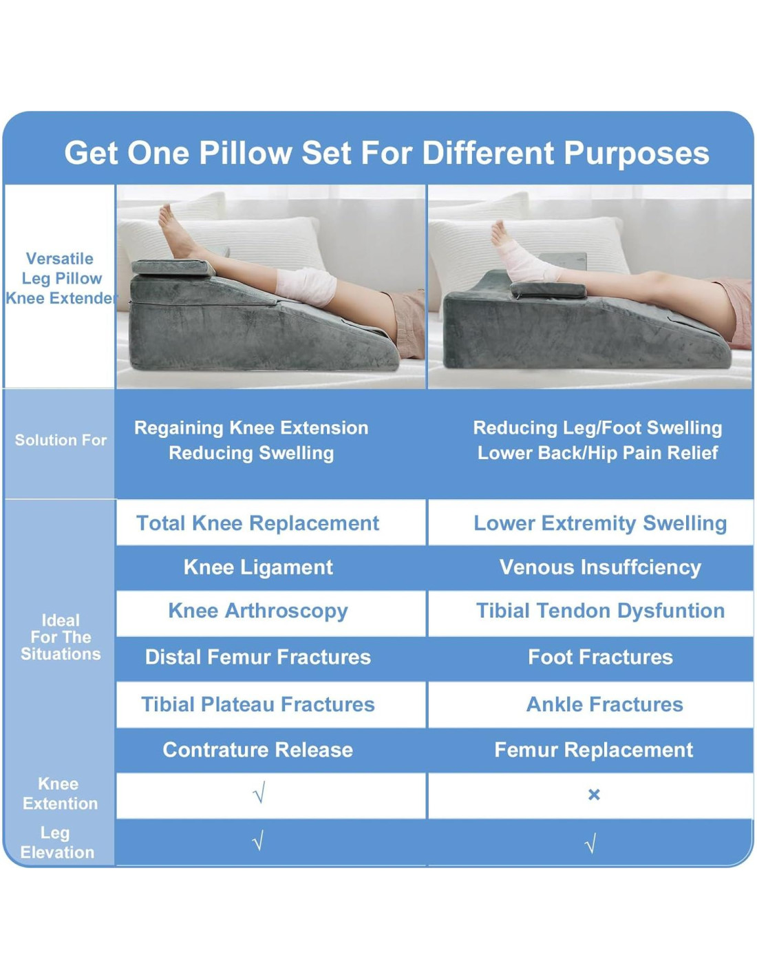- Acelera la Recuperación Postquirúrgica: nuestro cojín de reemplazo de rodilla ayuda a optimizar la extensión de la rodilla y la elevación cómoda de la pierna por encima del corazón para ayudar con la reducción de la hinchazón, promoviendo la recuperación después de un reemplazo de rodilla, fracturas o reconstrucción de ligamentos