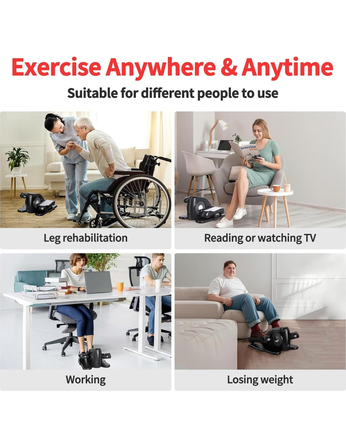 - Bajo impacto y 0 presión. El ejercicio de baja intensidad bajo el escritorio elíptico es especialmente adecuado para trabajadores de oficina sedentarios, personas mayores y personas que necesitan rehabilitación de piernas. ¡Sin presión en tus rodillas, columna y tobillos! Usar la máquina de ejercicio elíptica puede quemar calorías, reducir la fatiga, mejorar la vitalidad muscular, aumentar la circulación sanguínea, mejorar la salud cardiovascular.