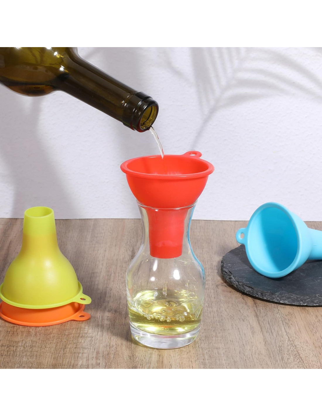 - Aplicaciones versátiles: Usa estos embudos de silicona para tareas de cocina como transferir aceites, salsas, bebidas y más, adecuados tanto para el hogar como para entornos de restaurante.