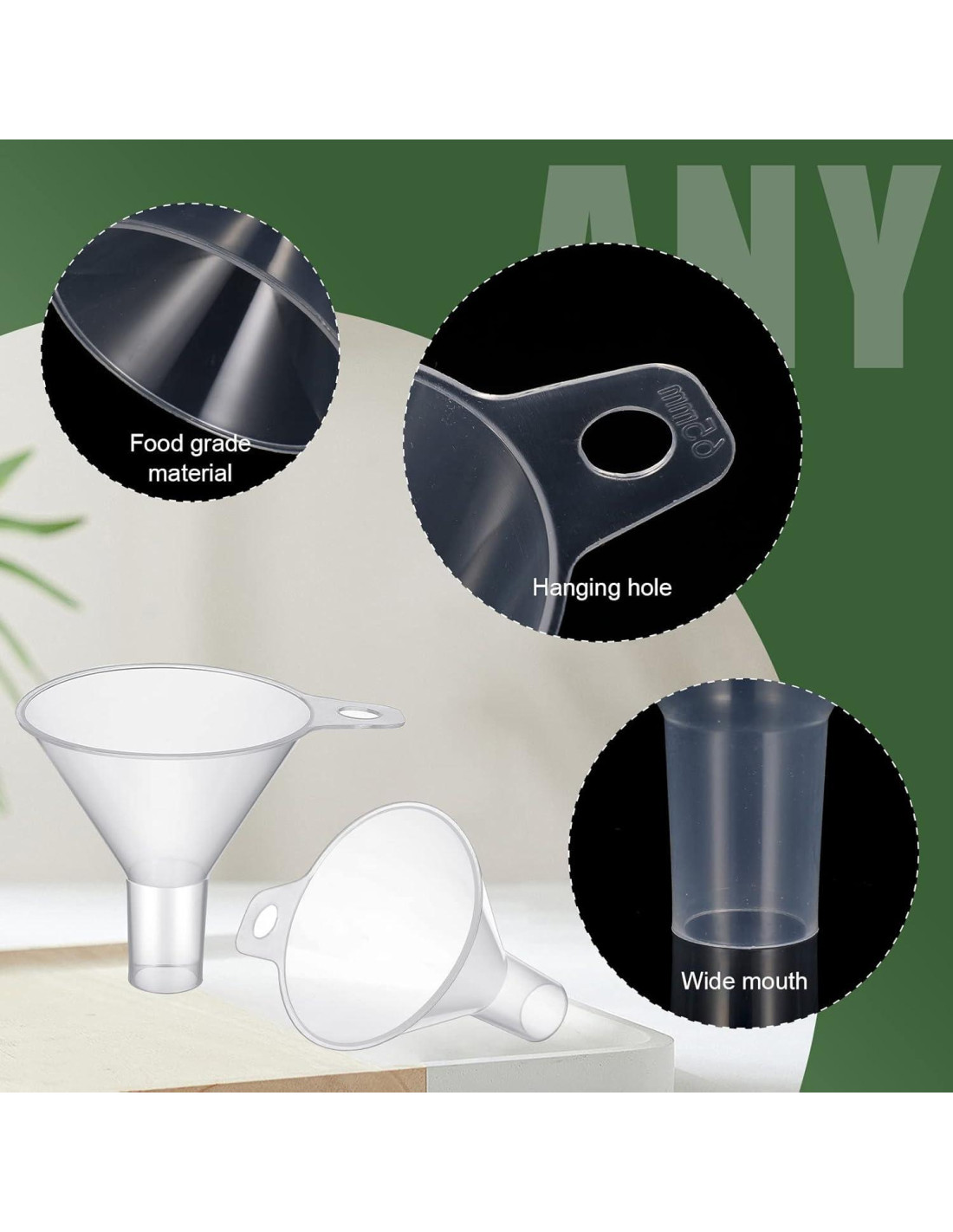 - Lo que puedes poner: con un diseño de boca ancha y clara, nuestro embudo de boca grande es adecuado para la mayoría de los líquidos y alimentos, como aceite, bebida, salsa y más, práctico y fácil, manteniendo tu cocina ordenada y limpia