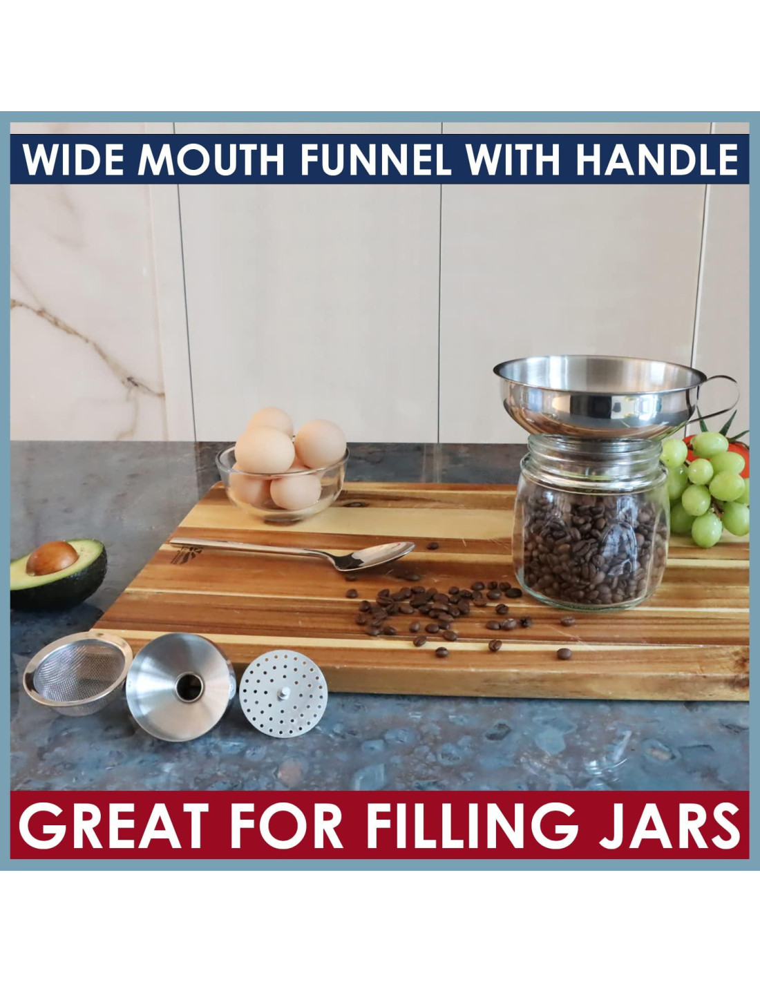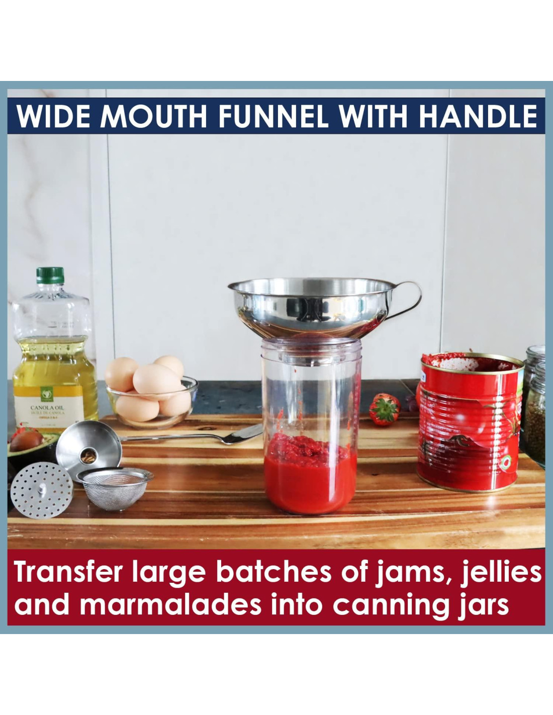 - EMBUDO DE BOCA ANCHA: El embudo grande de boca ancha de 5.7" (14,48 cm) incluye un filtro de malla fina extremadamente versátil que se coloca dentro del embudo grande para clarificar tus salsas y gravies, atrapar semillas, infusiones de hierbas y otras impurezas. La combinación del embudo grande de boca ancha y el filtro de malla desmontable hace que sea muy fácil colar grandes cantidades de caldo o salsa, filtrar aceite de freidoras y más.