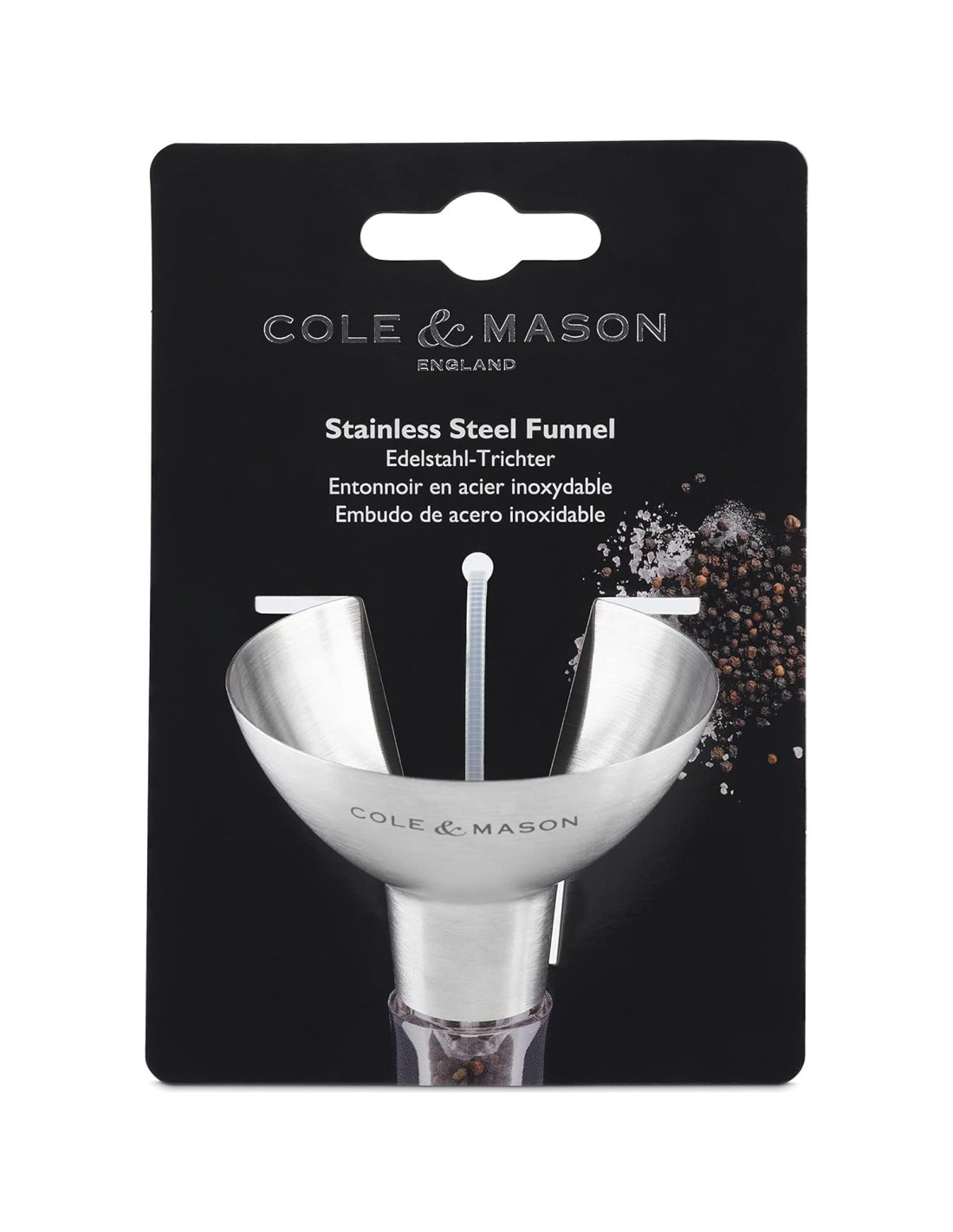 El embudo de acero inoxidable Cole & Mason es la herramienta perfecta para llenar rápidamente y sin derrames los molinillos de sal y pimienta. Hecho de acero inoxidable de alta calidad, el embudo promete ser resistente y duradero durante mucho tiempo sin oxidarse. Los embudos también son muy fáciles de limpiar. Los orígenes de nuestra marca se remontan a 1919 cuando Cole & Mason fue fundada como un negocio de regalos en Londres. La empresa pronto se expandió a artículos para el hogar en general y en 1946 lanzamos nuestro primer molinillo de madera para sazonar. Se encendió una pasión por el sabor: inspirándonos a desarrollar productos duraderos para resaltar lo mejor de la comida cotidiana utilizando las últimas tecnologías y materiales. Esta búsqueda de calidad e innovación está en el corazón de la historia de Cole & Mason hasta el día de hoy. Nuestro objetivo es proporcionarte tanto las herramientas como el conocimiento para resaltar el máximo sabor y gusto al cocinar y entretener. Queremos ayudar a que cada experiencia culinaria sea memorable para que la sensación de cada comida resuene contigo mucho después de disfrutarla. Nuestros productos han sido diseñados cuidadosamente para ser funcionales y hermosos, con materiales de calidad seleccionados que no solo se ven bien, sino que también tienen integridad. Están ahí para realzar tu mesa y la decoración de la cocina, mientras te vuelves creativo con los sabores. Ya seas un cocinero principiante o un chef experimentado, ya tengas un gusto tradicional o contemporáneo en diseño, encontrarás en Cole & Mason un excelente compañero para lograr grandes cosas en la cocina.