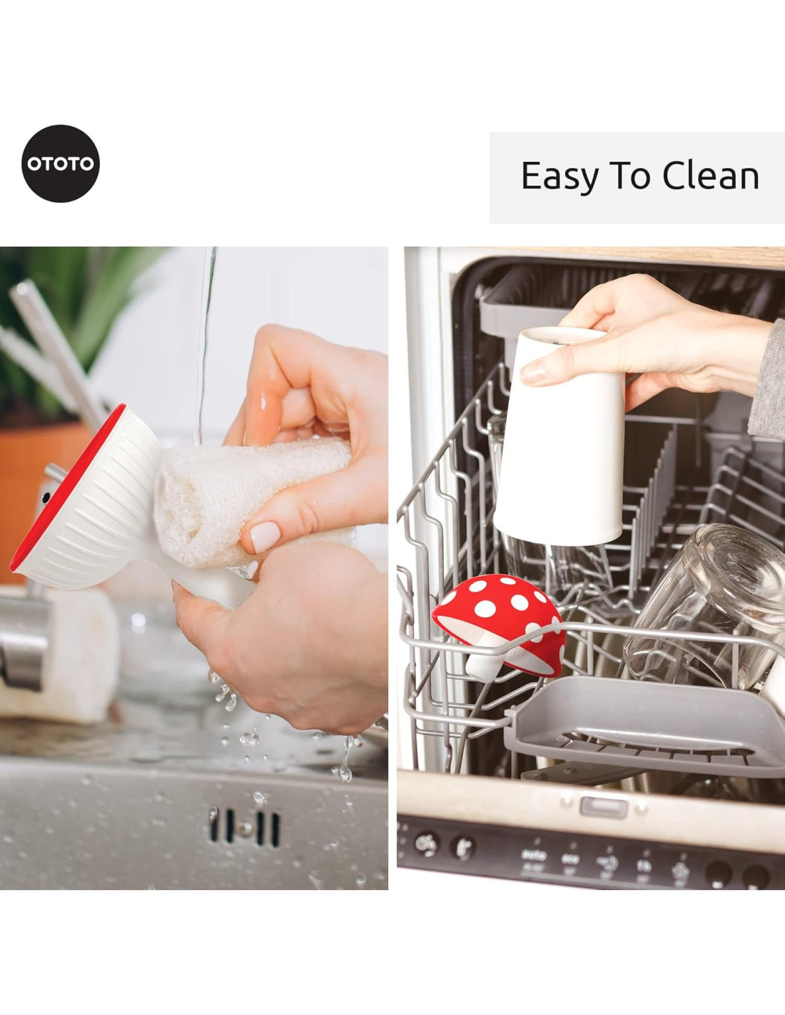 - Embudo-ly un Diseño Genial - A diferencia de Houdini, ¡no se escapará ni una gota de líquido con nuestro Embudo de Silicona en Forma de Hongo! Este producto de aspecto peculiar del Estudio OTOTO, galardonado con premios de diseño, convierte la actividad estresante de transferir líquidos de un recipiente a otro en algo divertido, ¡dejando tus encimeras de cocina libres de desorden! Solo coloca el tallo del embudo dentro del cuello de la botella, voltea la cabeza del hongo hacia arriba y comienza a verter. Además, almacena este embudo de cocina fácilmente, a diferencia de los de metal o plástico.