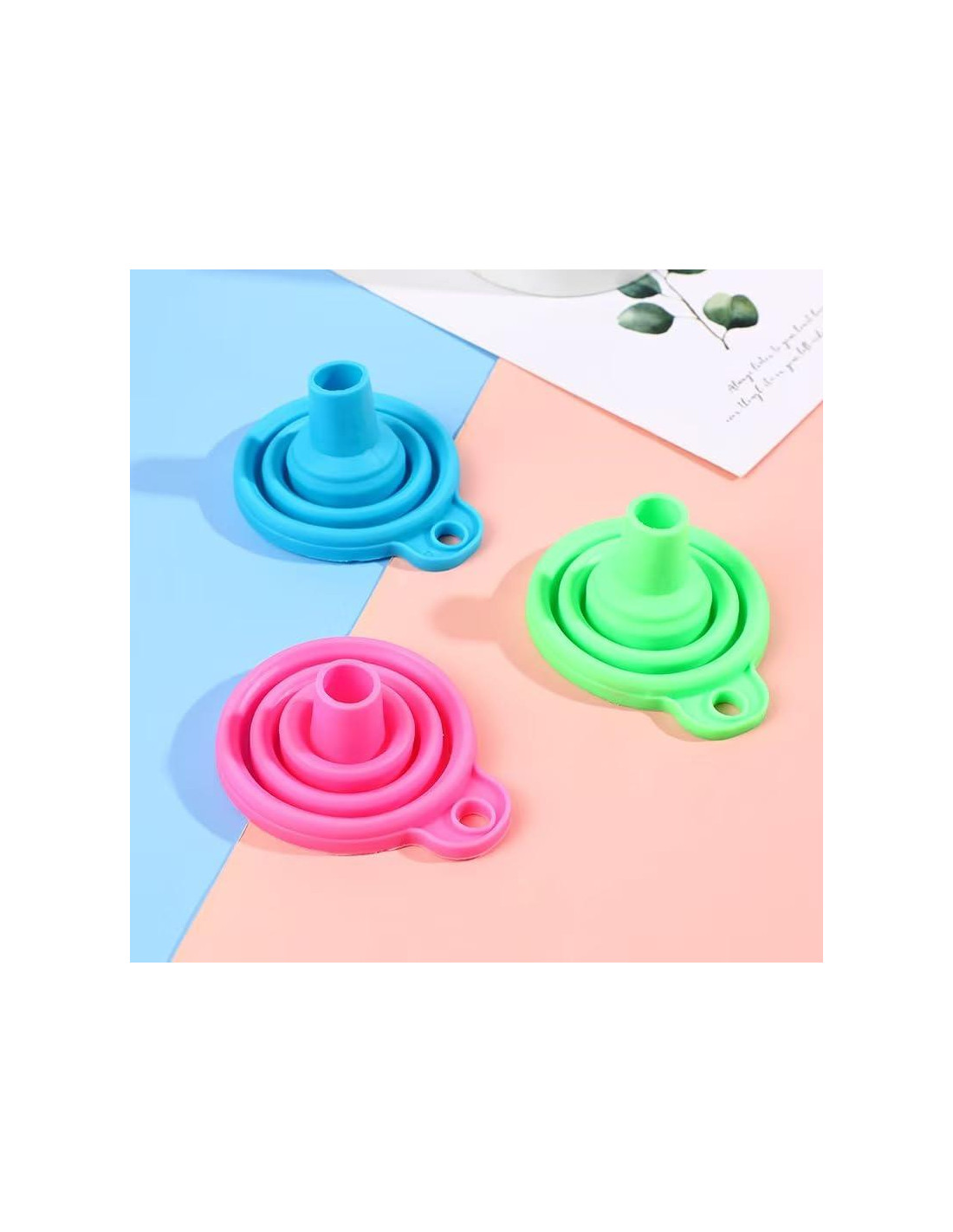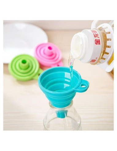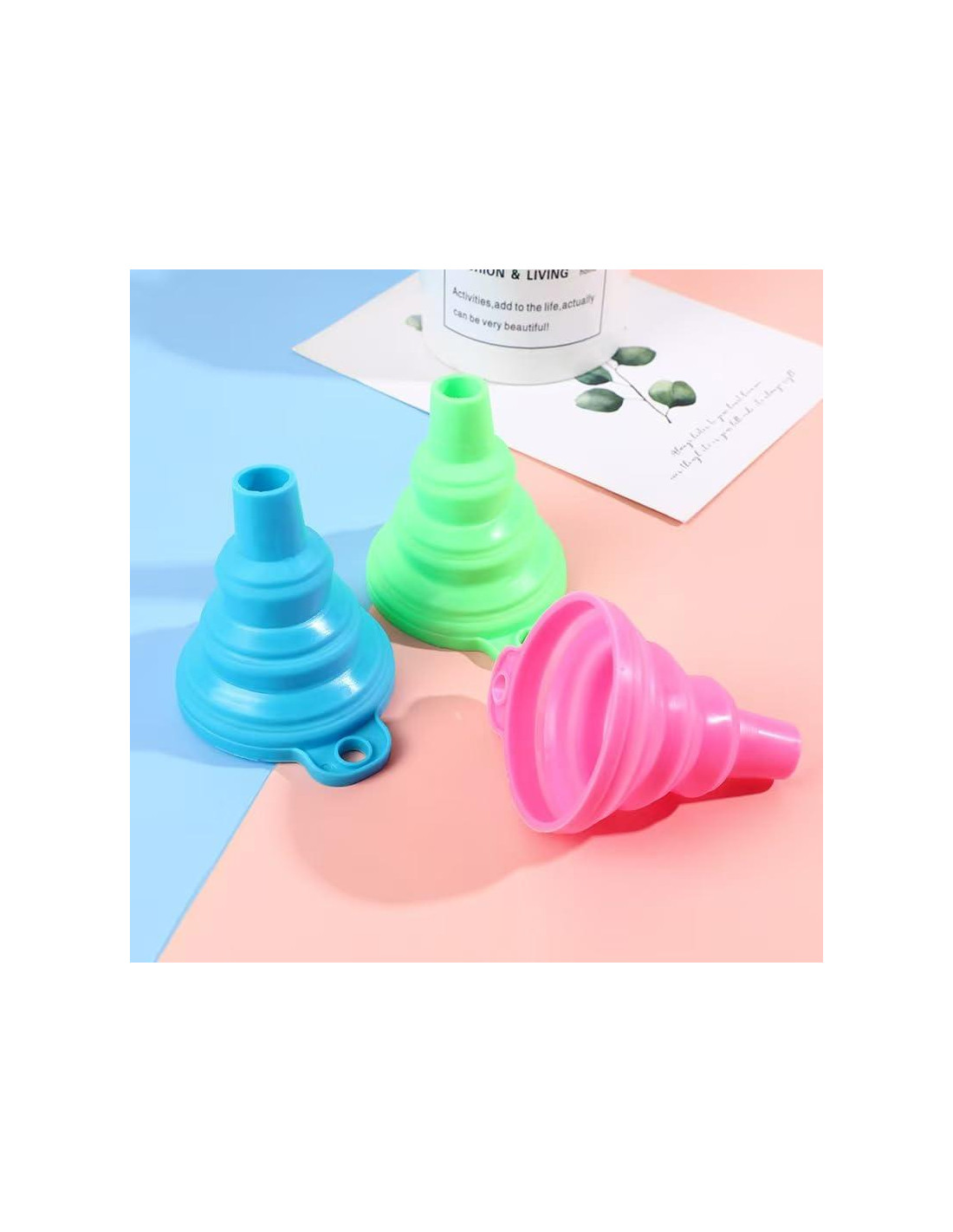 - Juego versátil: Este juego incluye 3 embudos de silicona colapsables en colores azul, verde y rosa para diversos usos en la cocina y el hogar.