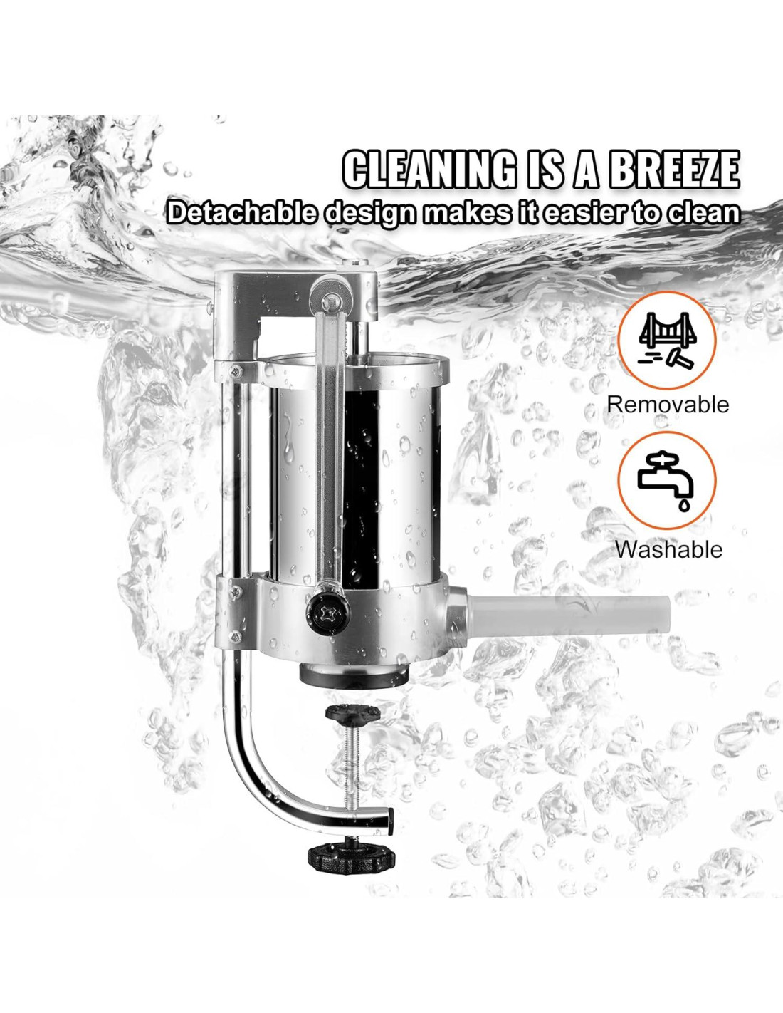 - Válvula de Liberación de Aire Premium: El aire se puede liberar al presionar para asegurar que la carne esté firme y sabrosa, y ya no hay preocupación por la falla del enema debido a la ruptura del recubrimiento de la salchicha.