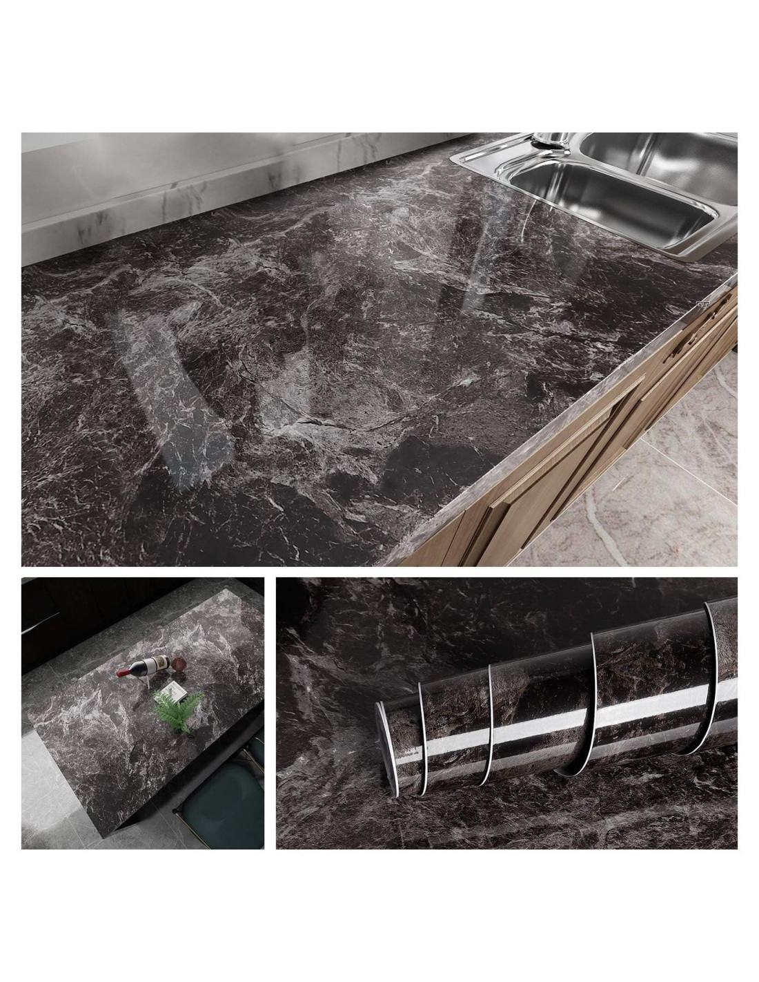 - DETALLES: Tamaño 15.8x78.8 pulgadas, total 8.65 pies cuadrados (40cmX2m), autoadhesivo (no se necesita pegamento adicional). Hecho de vinilo duradero, papel contacto de mármol oscuro, pelar y pegar. A prueba de aceite. Removible. Impermeable.