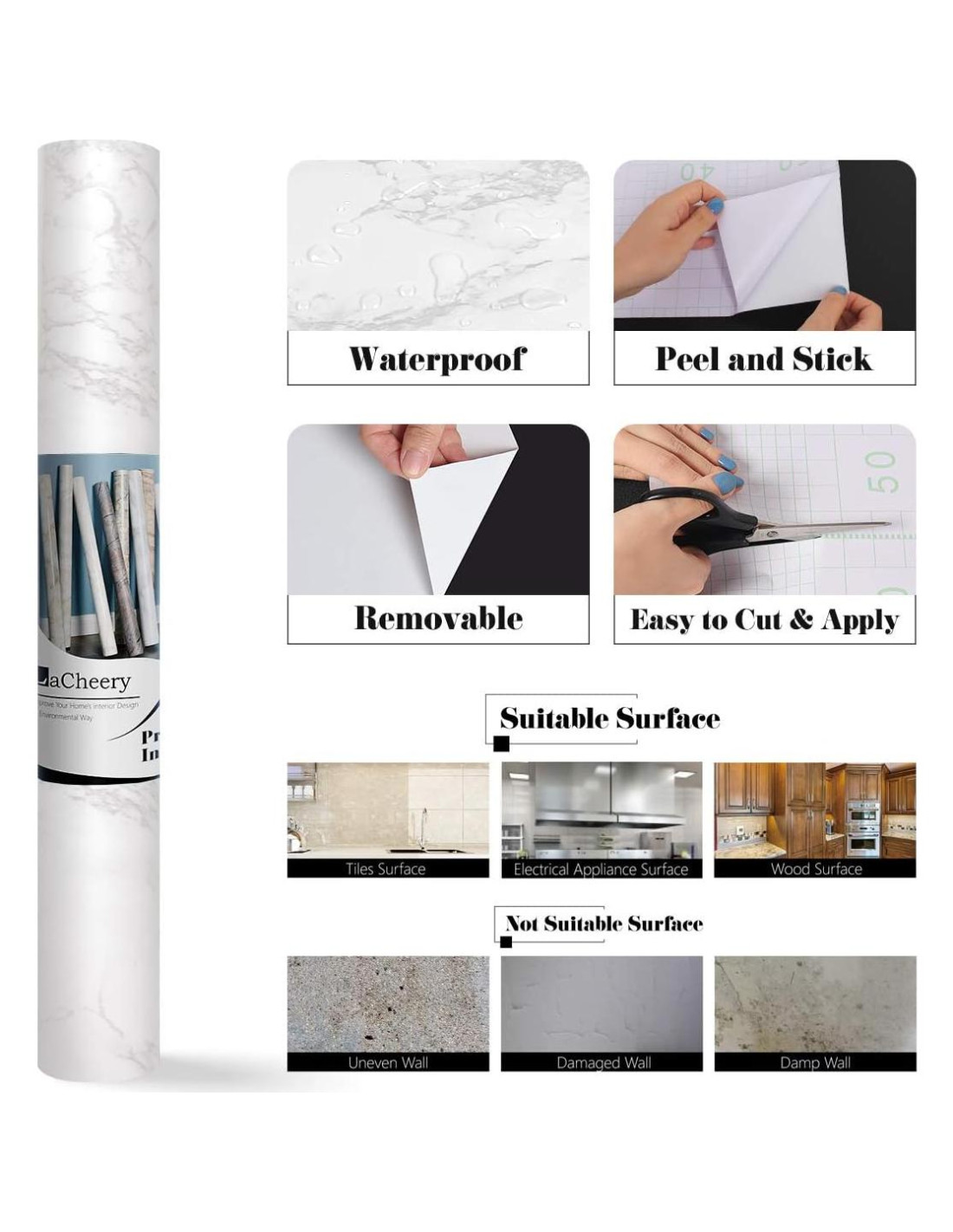 - CARACTERÍSTICAS: Solo despega y pega, la gran adhesión de este papel contacto de mármol gris blanco lo hace permanecer bien. Es removible, resistente al calor, impermeable, a prueba de aceite y resistente a manchas, fácil de limpiar, siendo una gran película protectora para muebles.