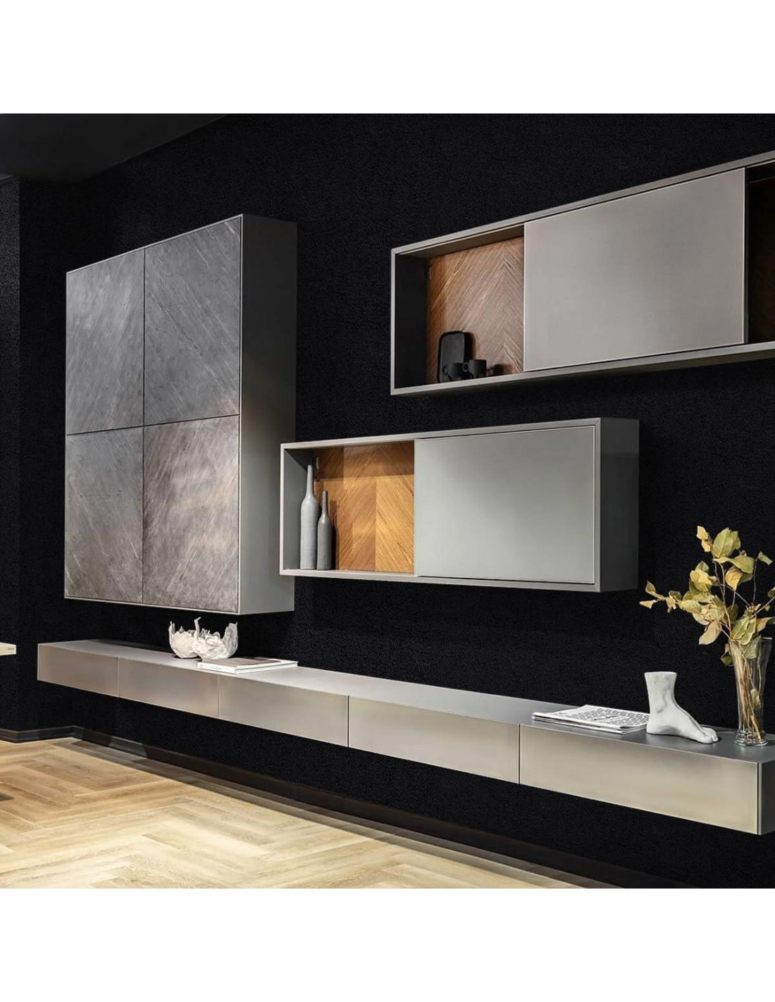 - [Tamaño y Material] : Rollo de 15.7 pulgadas (39.88 cm) x 118.1 pulgadas (299.94 cm) de papel tapiz negro. Este papel tapiz negro mate está hecho de vinilo de alta resistencia. Impermeable, resistente a manchas y a aceites. El papel contacto negro tiene una excelente adhesión y puede adherirse de manera perfecta y firme a la superficie de los objetos.