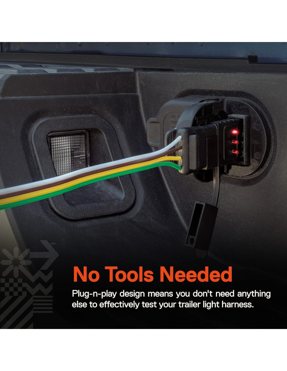 - NO SE NECESITAN HERRAMIENTAS - El diseño plug-n-play significa que no necesitas nada más para probar efectivamente el arnés de luz de tu remolque.