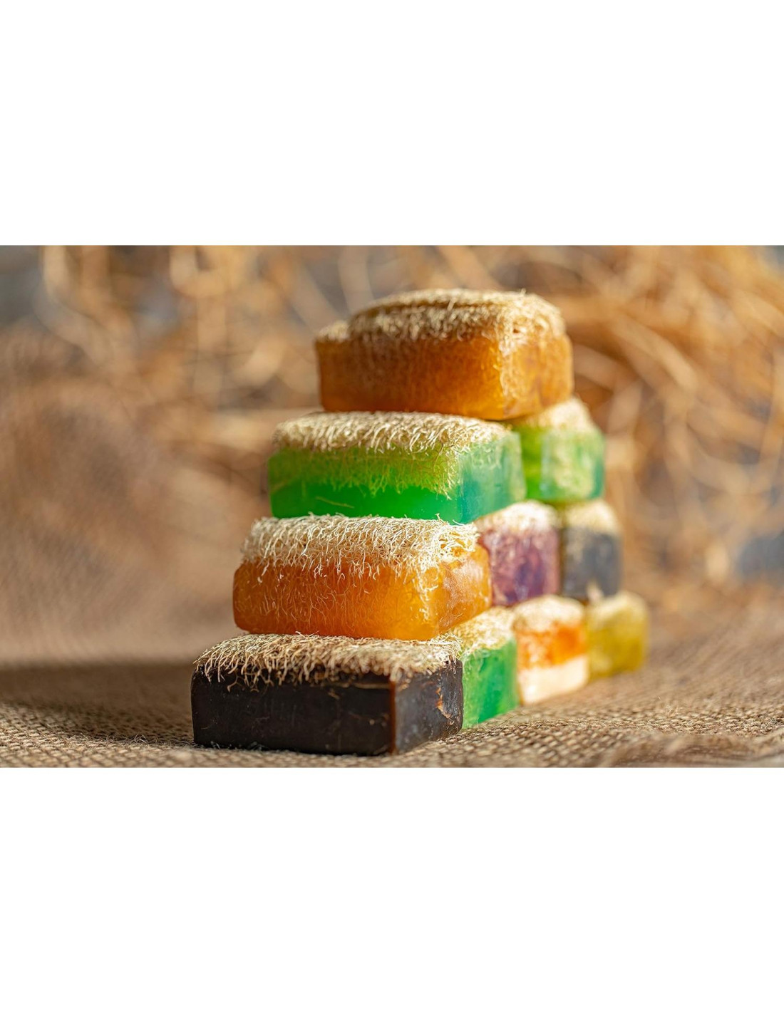 - LOOFAH TOTALMENTE NATURAL - El uso de lufa (también conocida como loofa, luffa, esponja natural) no es nuevo y ha existido durante siglos. Sin embargo, la mayoría de los fabricantes de jabón utilizan una forma de esponja marina que puede ser dura para la piel. Solo usamos lufa natural. Son simplemente las fibras de la planta de luffa. Ayuda a exfoliar suavemente la piel muerta y las manchas oscuras, limpia los poros y es excelente para personas con piel sensible.