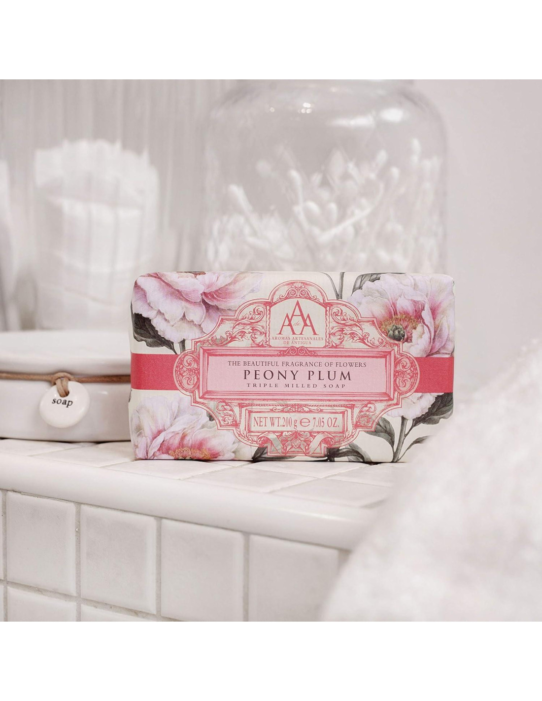 Disfruta de la maravillosa fragancia de flores con los aromas frescos del jabón de barra de lujo artesanal De Antigua en ciruela de peonía. Esta fragancia herbácea y floral ofrece un placer puro con toques de pachulí y madera de cedro. La colección de jabones de manos florales de Aromas artesanales De Antigua (AAA) ofrece una selección atractiva de fragancias florales.
