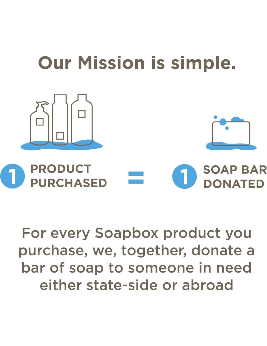 Soapbox fue fundada en 2010 con una misión simple: empoderar a las personas para cambiar el mundo a través de compras cotidianas de calidad. Nuestro fundador, David Simnick, hizo el primer lote de jabón en la cocina de su apartamento universitario mientras aún estaba en la Universidad Americana. Cada producto de Soapbox cuidadosamente elaborado que se compra dona una barra de jabón a alguien necesitado, ya sea aquí en los EE. UU. o en el extranjero. Hasta la fecha, Soapbox ha donado millones de barras de jabón a quienes lo necesitan, a menudo combinando la educación sobre higiene con ellas. Mientras Soapbox devuelve, ciertamente no renunciamos a la calidad. Al seleccionar a mano los ingredientes ricos en beneficios incluidos en nuestros productos, ofrecemos cuidado del cabello y personal de calidad de salón que te hace lucir genial, sentirte genial, oler genial y todo a un costo asequible. Nuestros productos están disponibles en minoristas de todo el país y se han realizado casi tres millones de donaciones.