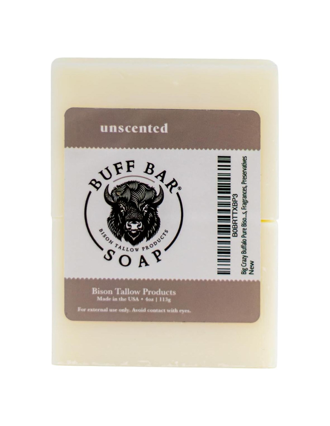 BUFF BAR Jabones de Grasa de Bisonte Sin Fragancia - Paquete de 2 (113.4 g cada uno, 226.8 g total) y limpieza simple hecha con una receta primitiva que incluye sin químicos, fragancias o conservantes y solo tres ingredientes - Grasa de Bisonte, Agua y Sosa. Libre de: vaselina, alcohol, sabores, olores, parabenos, conservantes, fragancias y colorantes. Solo para uso externo. - Tamaño: Jabones de 113.4 g (2 incluidos, 226.8 g total) - Beneficios de nuestra Grasa de Bisonte: Cosechado por la familia, Procesado en casa, No comedogénico, Ultra hidratante, Denso en Vitaminas A, D, K y E INGREDIENTES: Grasa de Bisonte y Agua de Sosa NOTA: El amarillamiento a medida que el jabón envejece es una parte natural del proceso de curado y continuará con el tiempo ACERCA DE BUFF BAR - Somos una pequeña empresa familiar en Nebraska que fabrica productos de salud y belleza utilizando solo grasa de bisonte y otros ingredientes naturales. Nos apasiona unir a las personas a través de la tradición de la cosecha de bisonte. - Compatibilidad con la Piel - Imitando de cerca el sebo humano para una rápida absorción y equilibrio natural de humedad, no obstruirá los poros. - Rico en Vitaminas Esenciales - Rico en vitaminas A, D, E y K solubles en grasa para nutrir, reparar y proteger profundamente la piel. - Hidratación Duradera - Crea una barrera transpirable que retiene la humedad sin la grasitud de las cremas sintéticas. - Puro, Ancestral - 100% natural, sin aditivos y obtenido de bisonte de América del Norte, confiable por generaciones. - Calma y Restaura la Piel - Naturalmente alto en CLA y ácidos grasos omega para aliviar la irritación y apoyar la curación.