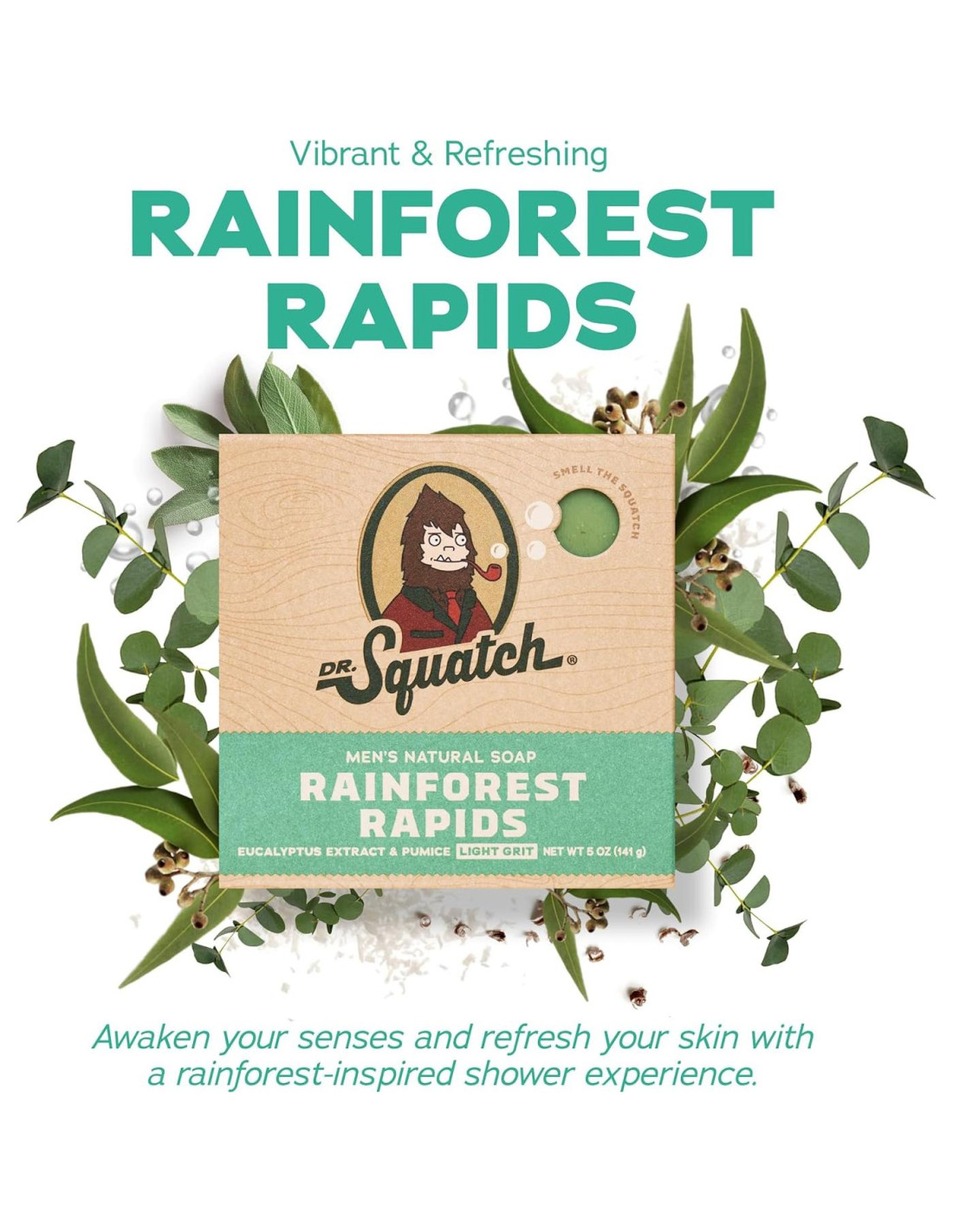 - SUBE EL NIVEL - Mejora tu ducha con nuestros jabones espumosos que presentan las fragancias favoritas de Dr. Squatch: Rápidos del bosque tropical, Castaway de coco, Caídas frescas, Cítricos de verano y Yogur griego de eucalipto