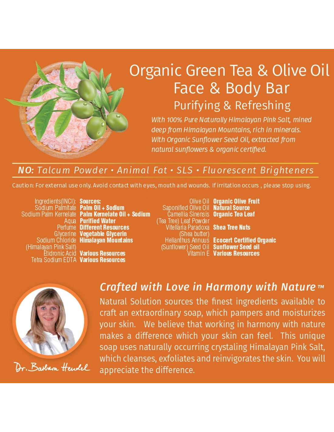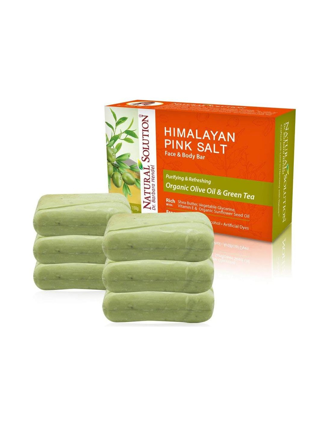 Natural Solution ofrece la barra de jabón orgánico para cara y cuerpo hecha con aceite de oliva orgánico, extracto de té verde y sal rosa del Himalaya. Usamos sal rosa en nuestros productos de cuidado de la piel y belleza debido a sus propiedades curativas para la piel. La sal rosa se extrae de las grandes montañas del Himalaya en Pakistán, la fuente de sal más pura. Además, la sal está cargada con 84 minerales esenciales, por lo tanto, es mejor para la acondicionamiento y nutrición de la piel. Los increíbles extractos de té verde y oliva actúan como un milagro para tu piel. El aceite de oliva es el mejor para la hidratación y humectación de la piel. Nuestra barra de jabón corporal natural es la mejor para aquellos que sufren de sequedad e picazón en la piel. El té verde también tiene muchos beneficios para la piel, como eliminar el exceso de aceite de la piel, limpiar los poros obstruidos, reducir el enrojecimiento de la piel, proteger la piel de los efectos ambientales y actuar como un agente anti-envejecimiento. El té verde también es el mejor para la exfoliación de la piel. El jabón de sal rosa del Himalaya está libre de químicos, SLS y grasas animales. Precaución: Solo para uso externo. Evitar el contacto con los ojos, la boca y las heridas. Si ocurre irritación, por favor deja de usar. Ingredientes: PALMITATO DE SODIO, PALMITE DE SODIO, AGUA, PERFUME, GLICERINA, CLORURO DE SODIO (SAL ROSA DEL HIMALAYA), ÁCIDO ETIDRÓNICO, EDTA TETRASÓDICO, ACEITE DE OLIVA, ACEITE DE OLIVA SAPONIFICADO, POLVO DE HOJA DE CAMELLIA SINENSIS (TÉ VERDE), VITELLARIA PARADOXA (MANTECA DE KARITÉ), ACEITE DE SEMILLA DE HELIANTHUS ANNUUS (GIRASOL) Y VITAMINA E.