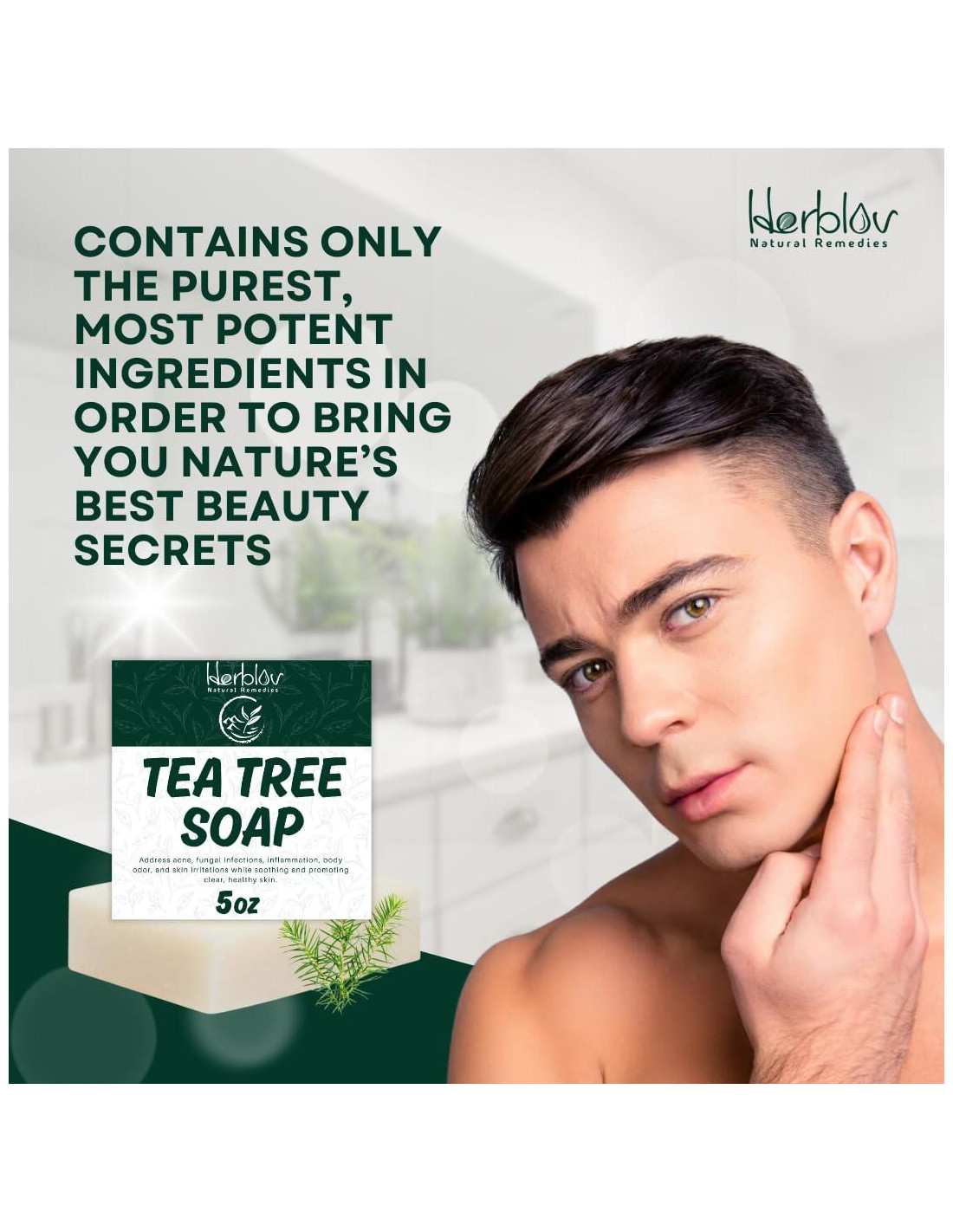 - JABÓN DE ÁRBOL DE TÉ NATURAL: Nuestro jabón de árbol de té para la cara y el cuerpo es un lavado corporal suave recomendado para promover la salud de la piel. El aceite de árbol de té apoya la defensa natural de la piel contra irritaciones y brotes.