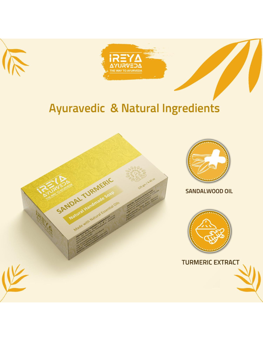Jabón de Cúrcuma y Sándalo - (Paquete 2) Natural Ayurvédico para Iluminar y Aclarar la Piel | Jabón Haldi Chandan Libre de Parabenos, Libre de SLS y Libre de Gluten, Vegano, 125 g (4.41 oz) Jabón Hecho a Mano en India